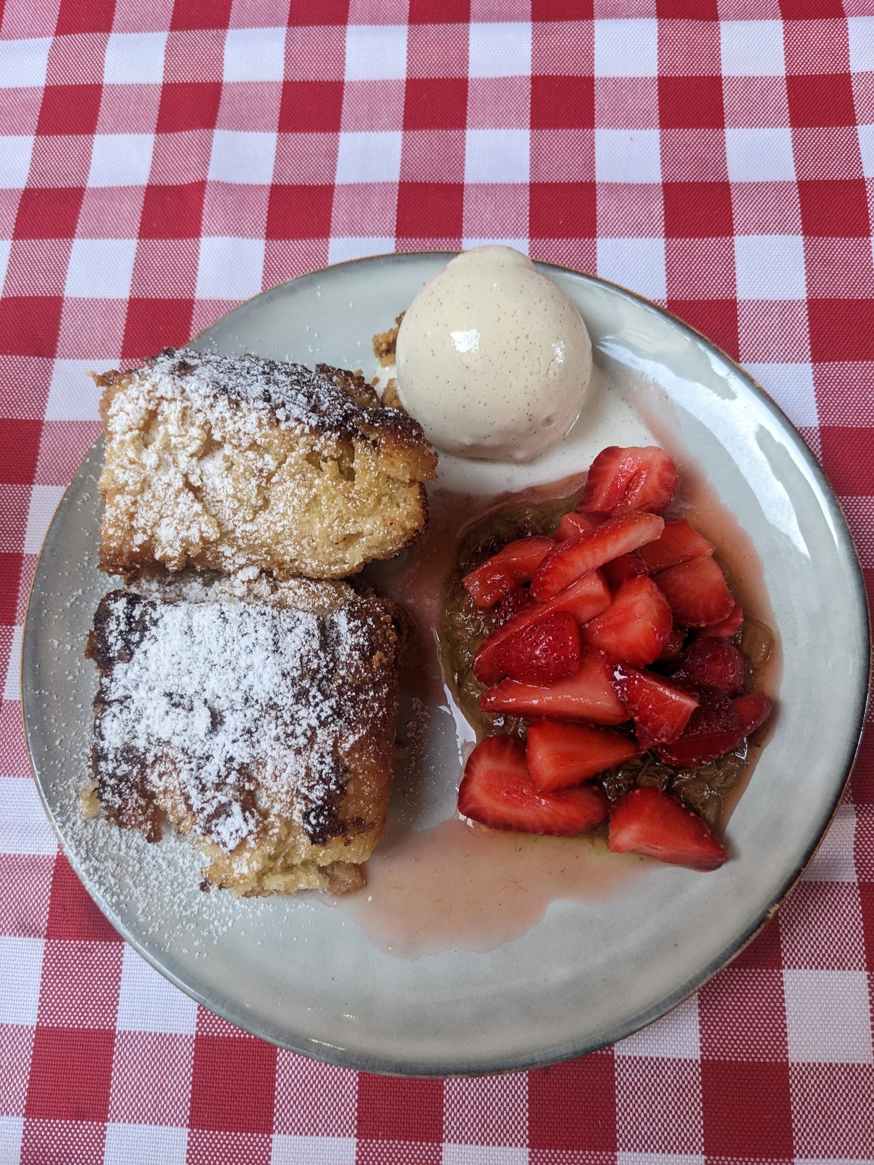 Nourriture simple et délicieuse avec des portions généreuses et le dessert était parfait ! (Pain perdu caramélisé : pain perdu avec sucre caramélisé dessus) 😍