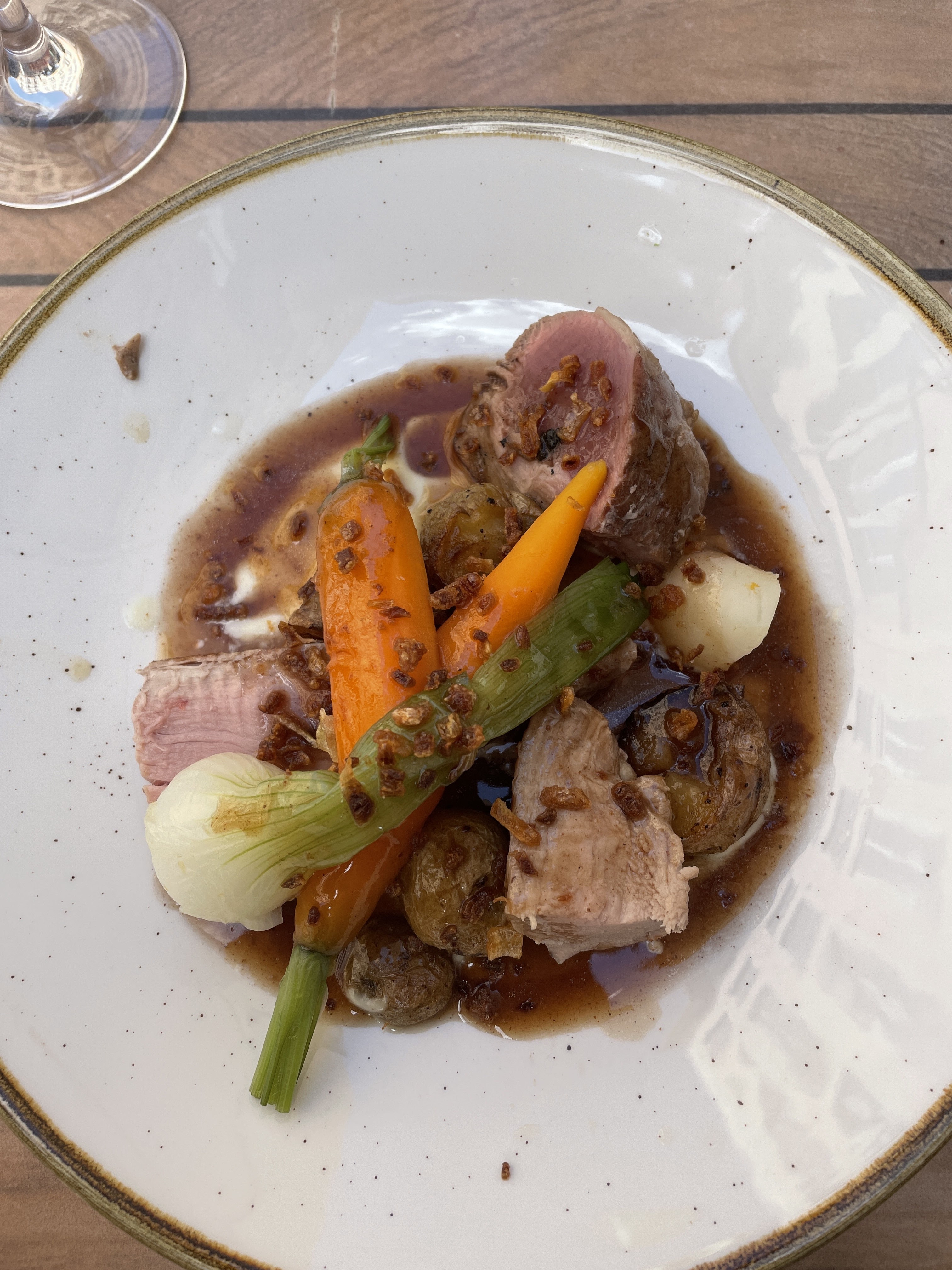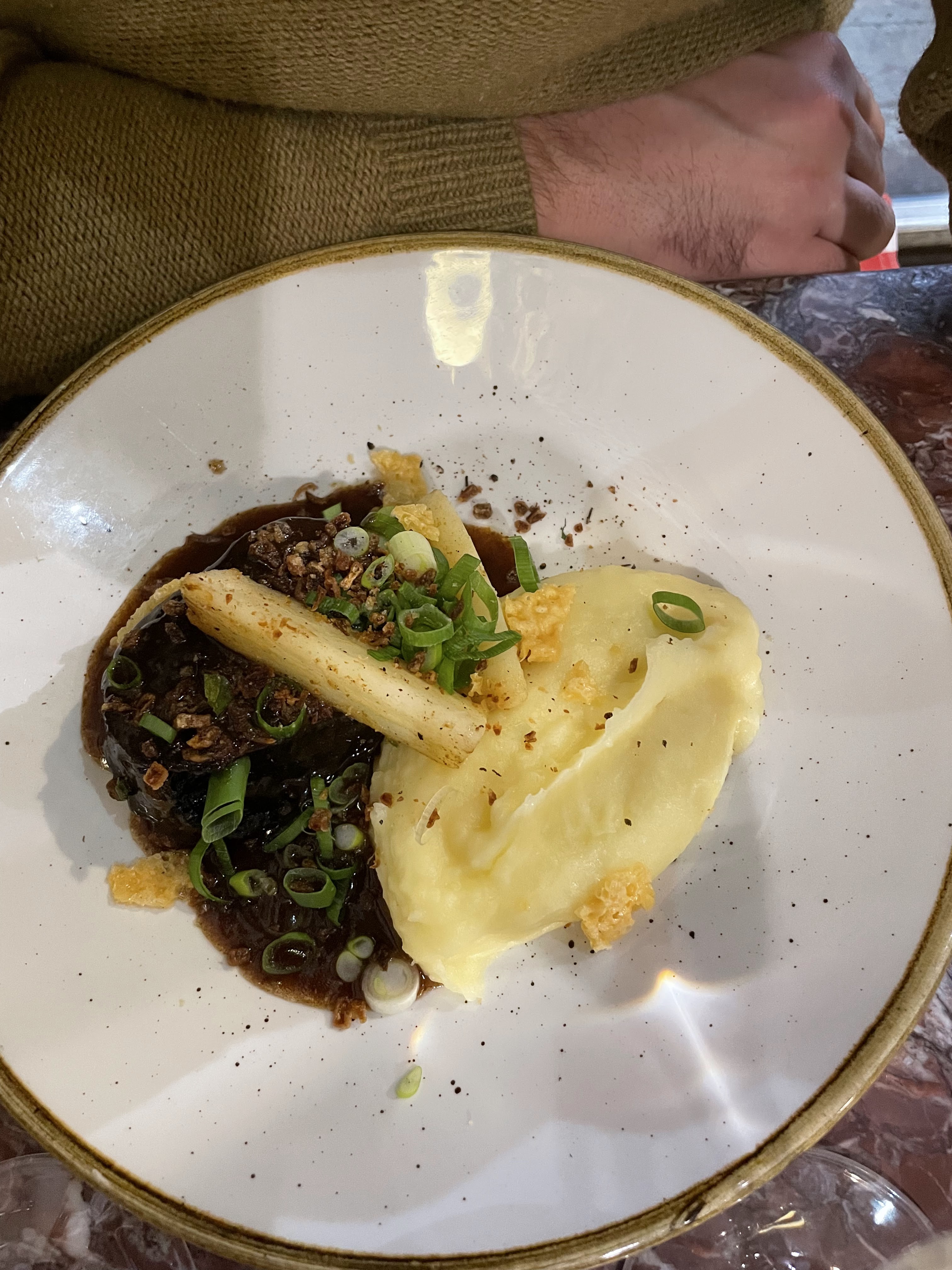 Très bon plat mais aurait mérité une cuillère de purée en plus ( pour un plat à 20 euros ) Et dommage qu’il n’y ait plus de plat du jour à 13h pour pouvoir profiter de la formule du midi .