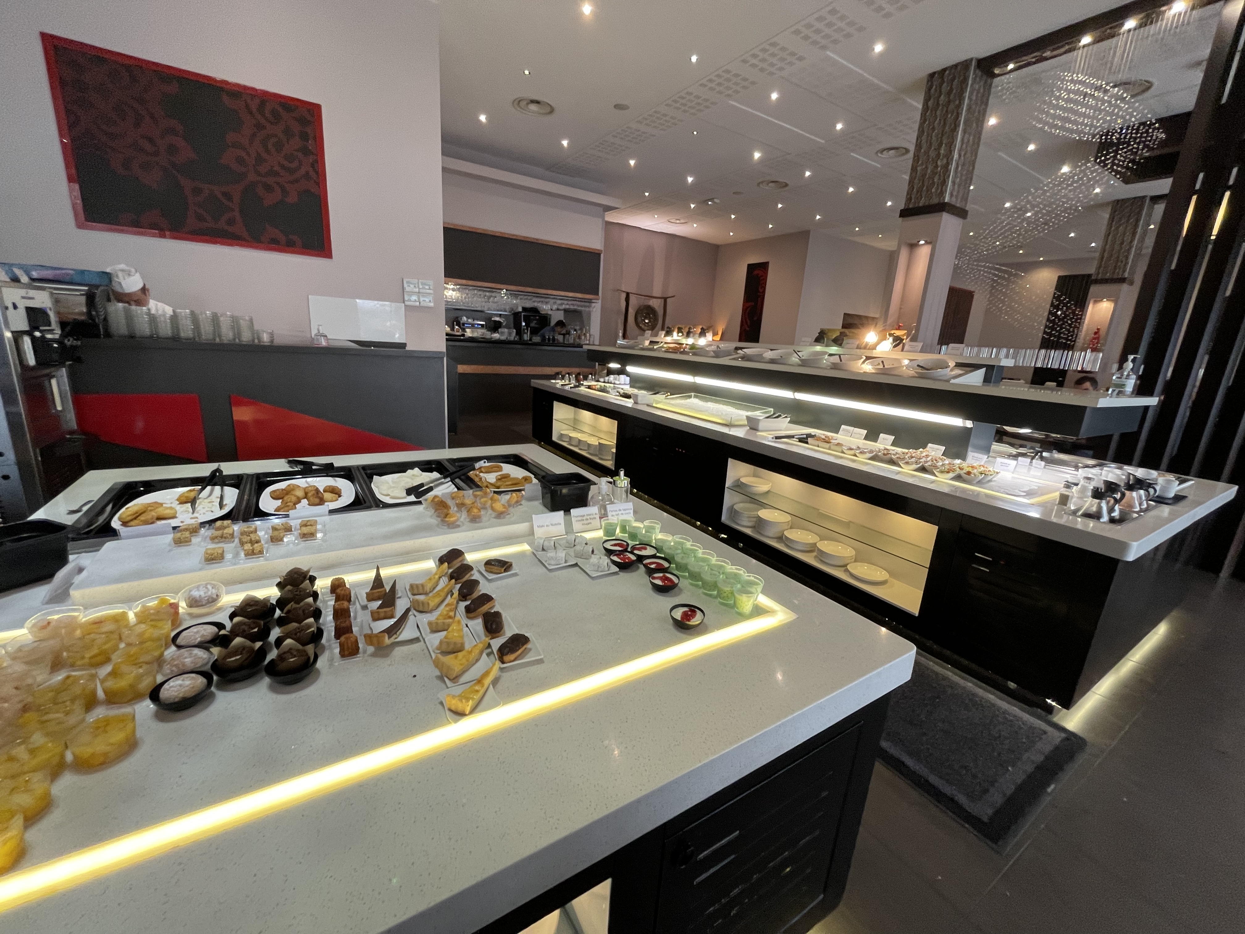 Le buffet froid est très bien garni et plutôt qualitatif. La partie chaude est bien plus décevante, avec beaucoup de produits frits ou des plats qui baignent dans une sauce semi industrielle. Les desserts sont quand à eux tous surgelés et de moindre qualité. Cela reste néanmoins un bon rapport qualité prix.