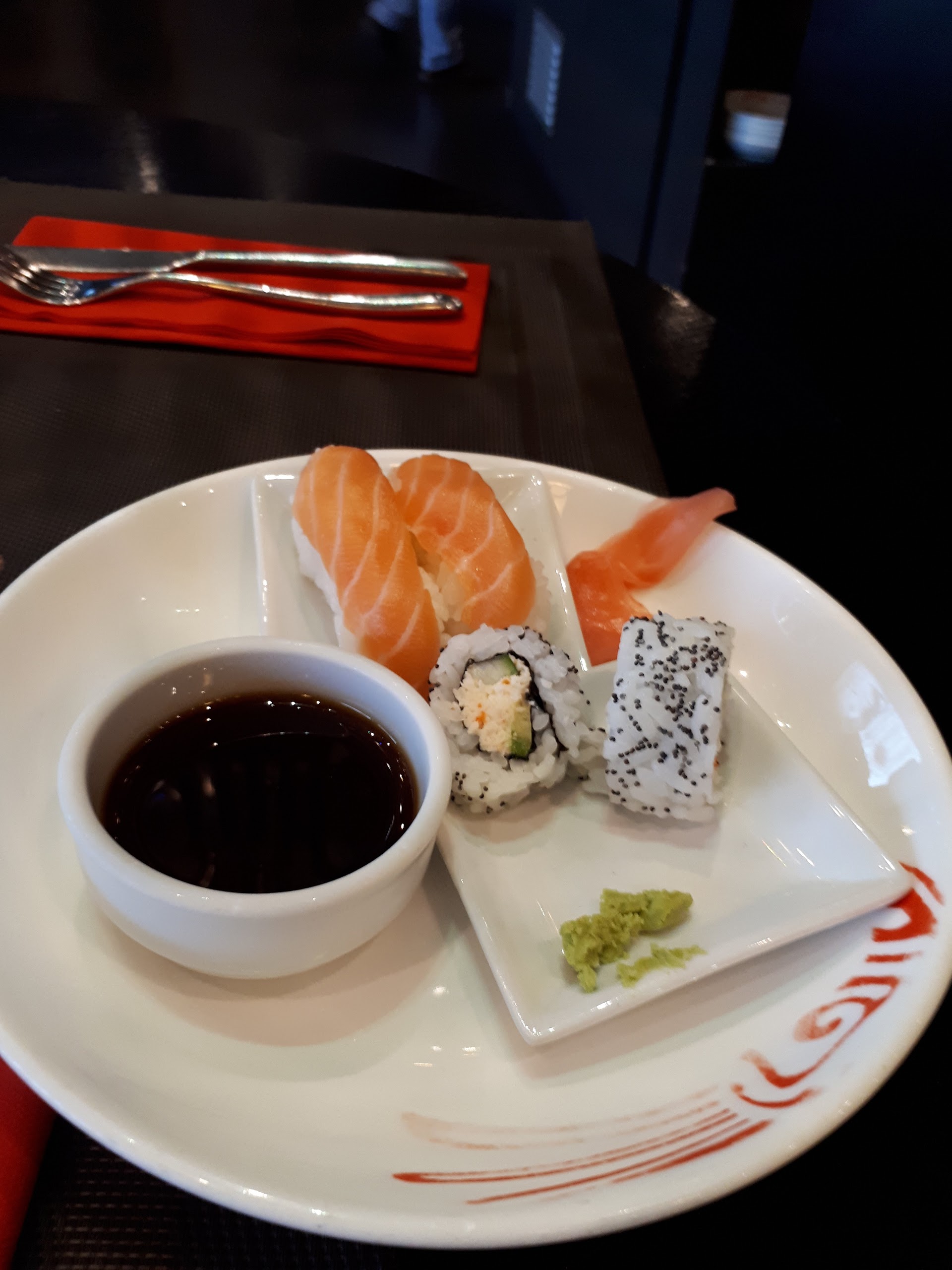 La nourriture est très bonne et le prix est correct. Les sushis manquent un peu de diversité cependant. Le personnel est très aimable et souriant. Le lieu est très bien décoré mais le restaurant est malheureusement très bruyant c'est dommage. On y passe quand même un bon moment