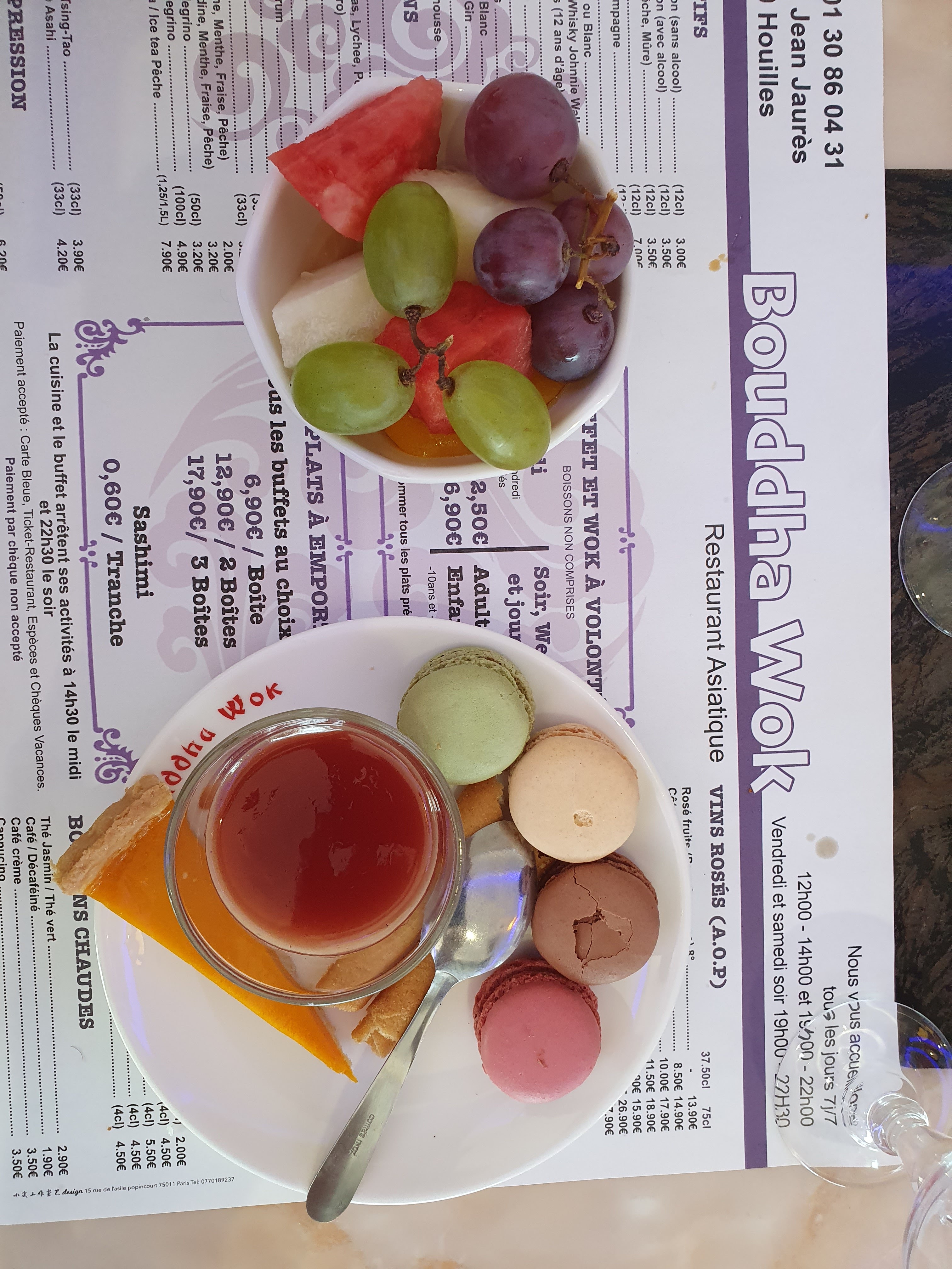 Produit de bonne qualité, savoureux et variées. Que des plats asiatiques. Des frites et des nuggets de poulet pour les enfants. Une carte variée pour les boissons. Le prix reste correct 14€90 le midi de lundi au vendredi et 19,90€ le soir et les week-end pour un adulte. Très bonne expérience pour moi.