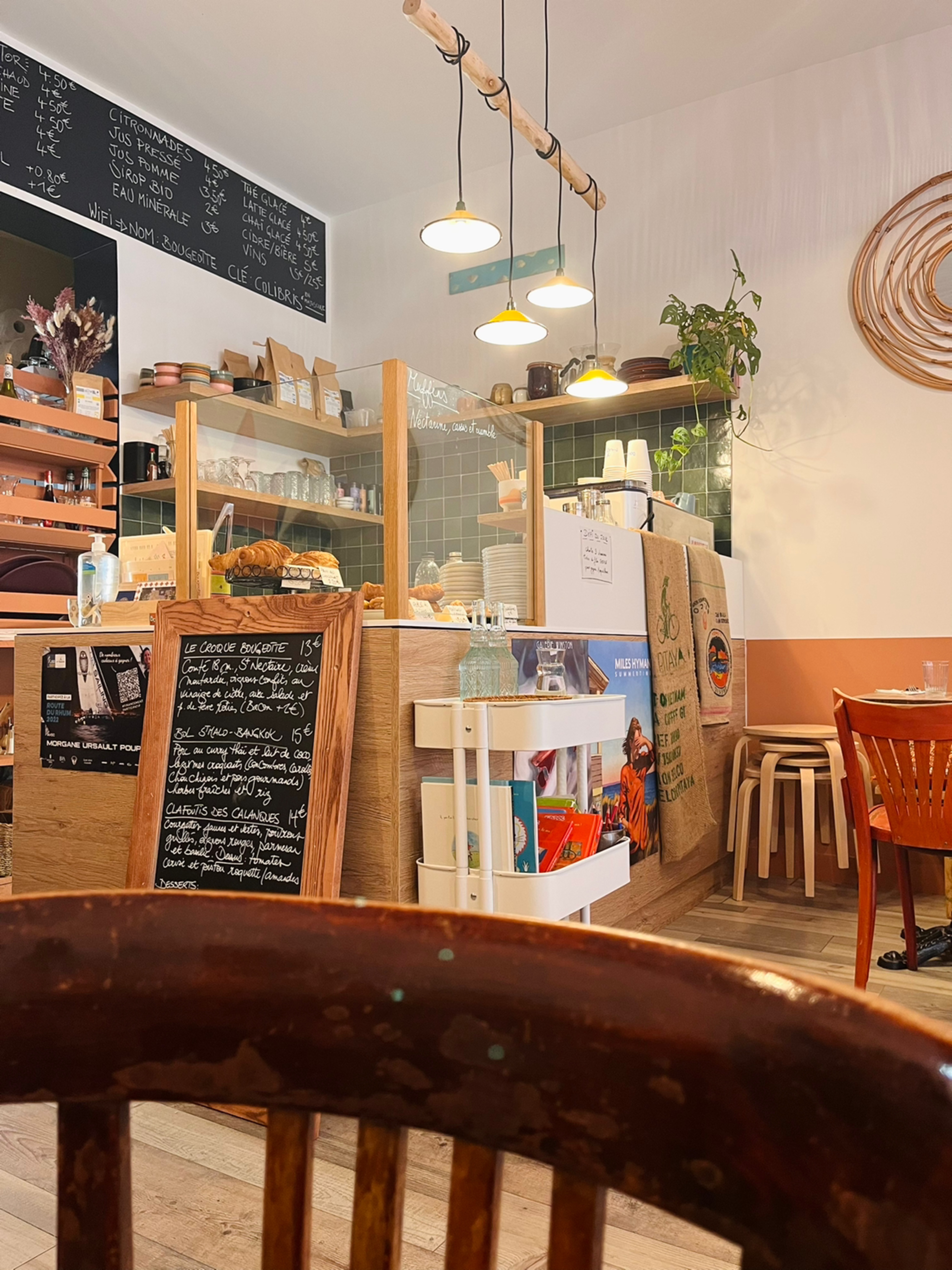 Tout est parfait, TOUT ! Des plats gourmands, avec des produits locaux, des épices et beaucoup d’amour, en deux mots ; un délice! Ambiance cocooning et service tellement agréable. Et sans oublier : les desserts chez Bougeotte ? Dévorés en moins de deux minutes ! Bref, si vous hésitez encore à vous arrêter pour petit-déjeuner, déjeuner ou goûter, n’hésitez plus : faites les trois ! 🥐🥗🍪💛