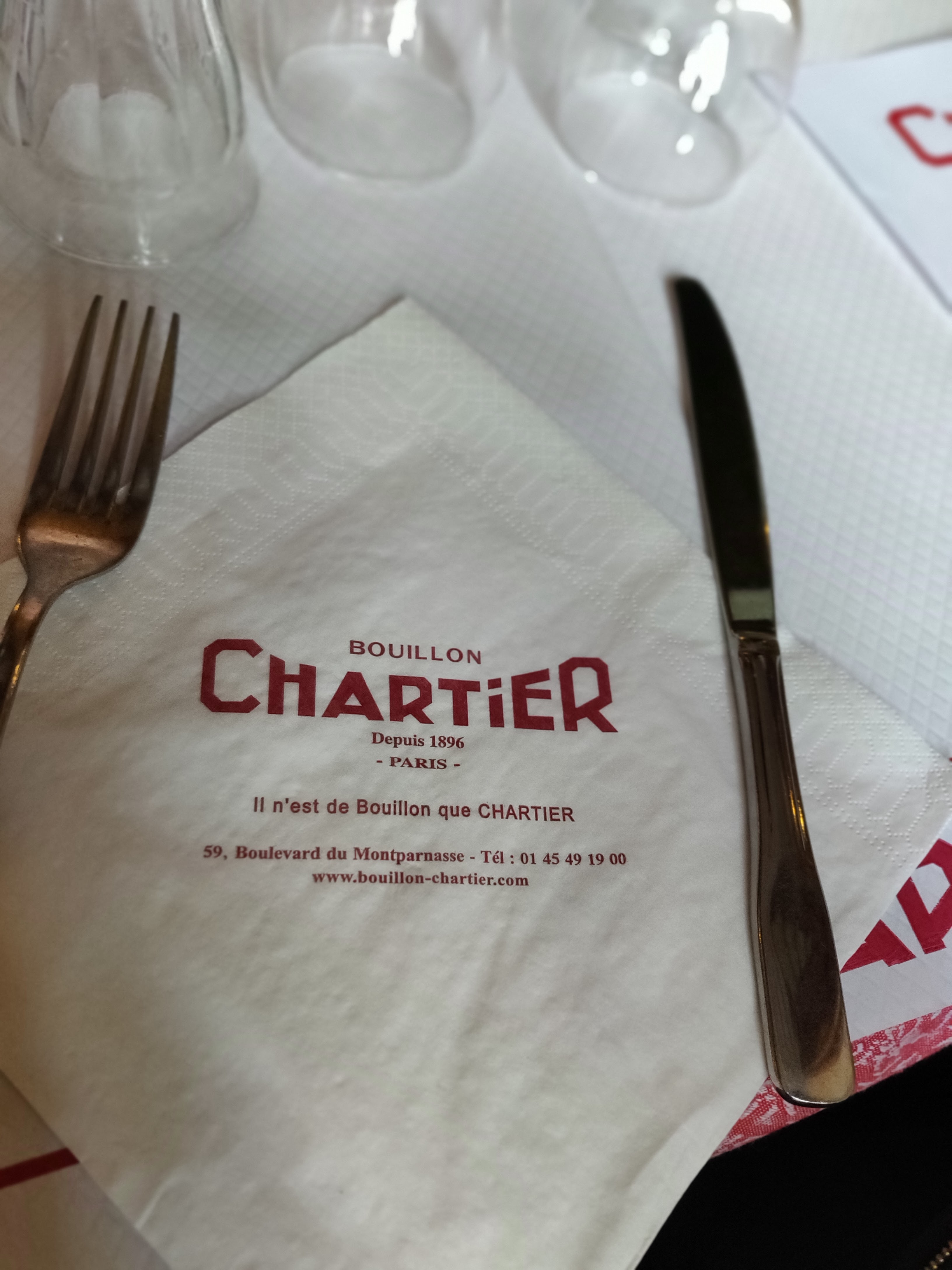 C'est toujours un plaisir de se rendre au Bouillon Chartier de Montparnasse ! Tout d'abord, pour l'ambiance, la décoration de style Art Nouveau et l'atmosphère festive et chaleureuse en général. Pour ce qui est de la nourriture, elle ne déçoit pas compte tenu du prix des plats. L'ensemble de la carte permet de retrouver ces recettes qui ont bercé notre enfance. C'était bon, c'était sympa, ce n'était pas onéreux. Est-ce que j'y retournerai ? Très certainement.