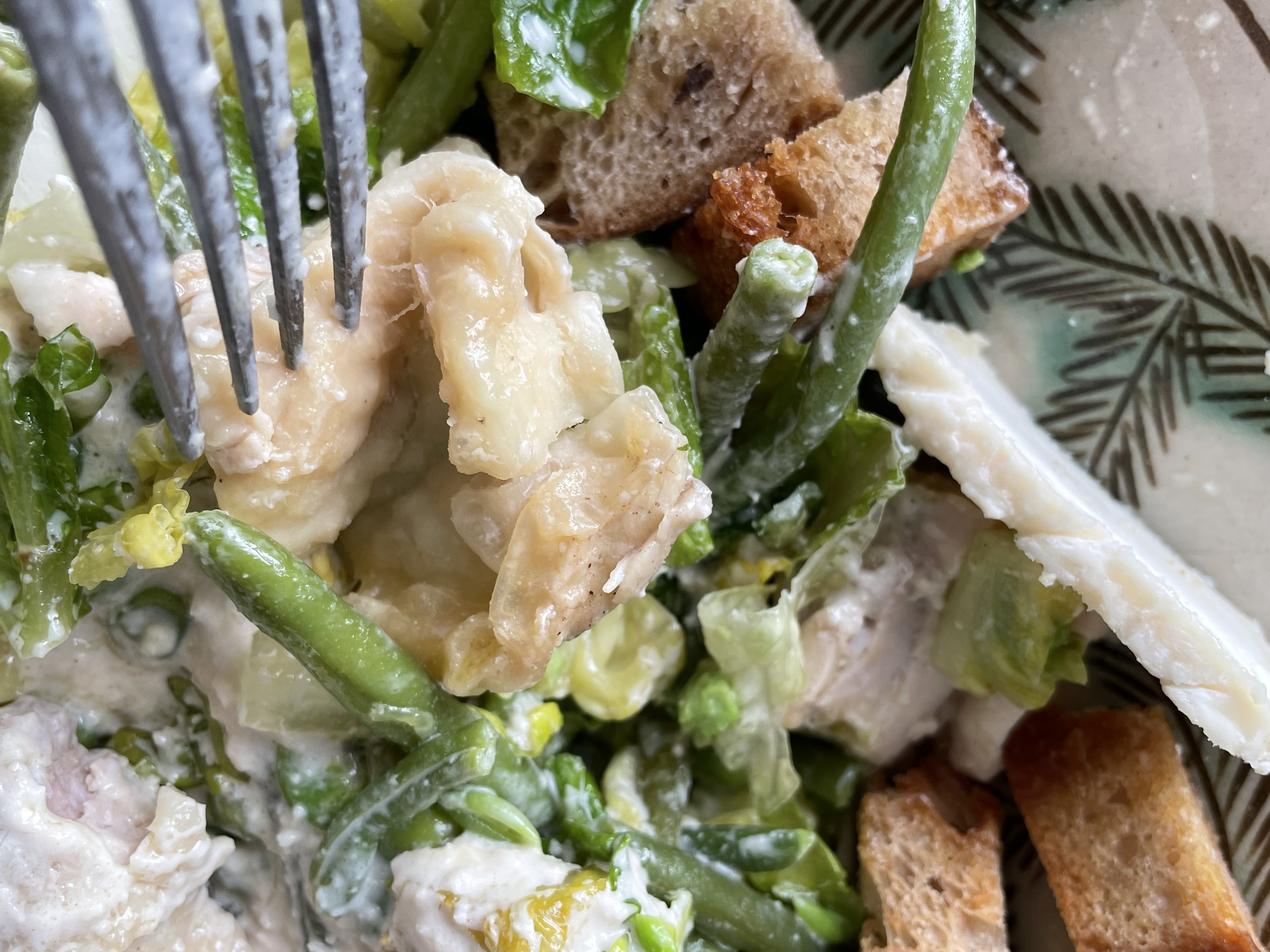 Livraison d’une salade césar. Sérieusement une honte: que des morceaux grossiers de peau de poulet mal cuit, on dirait les restes du poulet de la veille . Comment peut on servir ça ? A vomir 🤮🤮