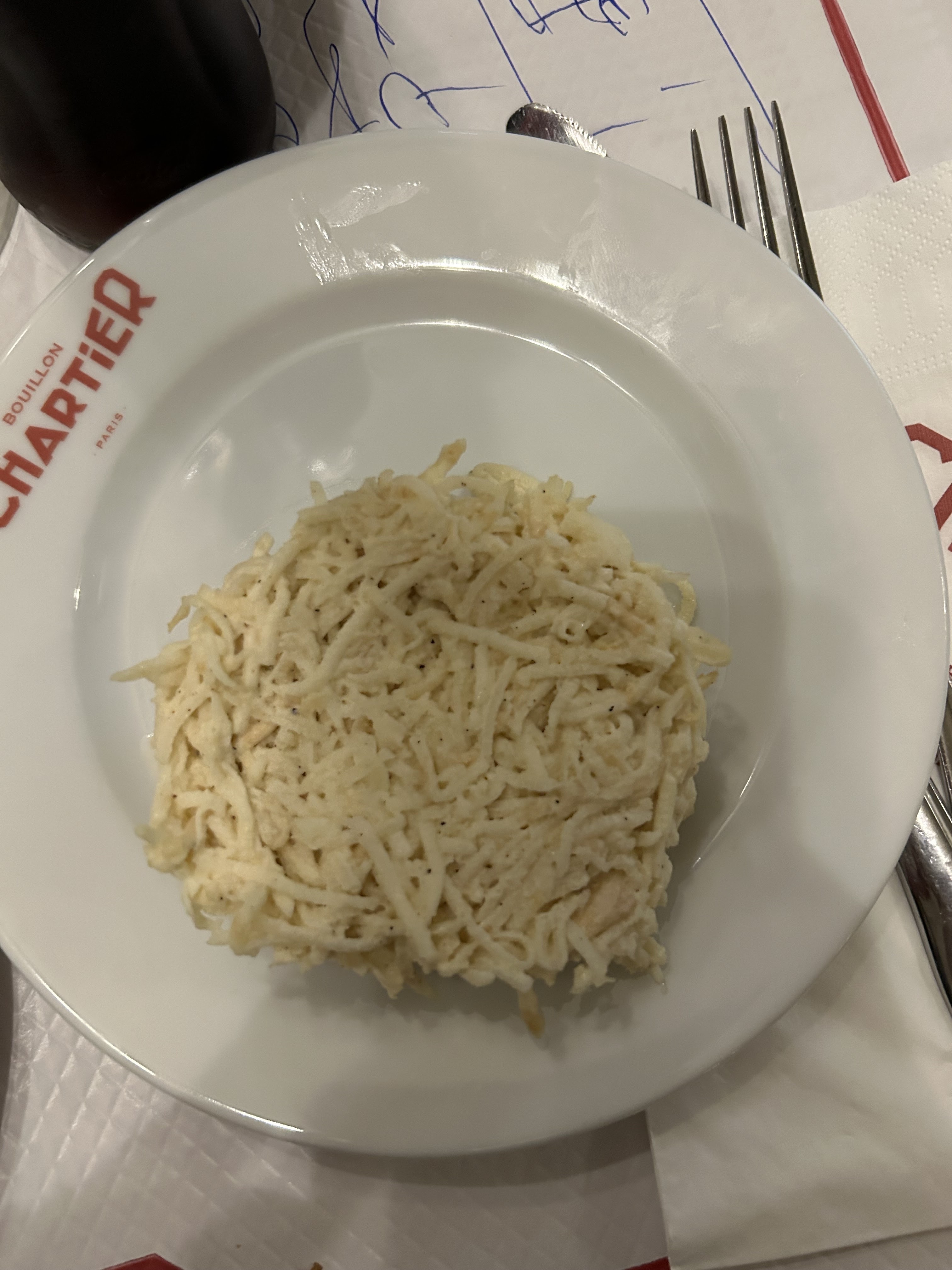 Après avoir été des lieux que je conseillais à mes amies, je trouve que la qualité a baissé chez Bouillon Chartier (Montparnasse). Malheureusement une fois qu’ils ont la notoriété ils cherchent à diminuer les coûts et prennent des aliments de moins bonne qualité. Habituellement satisfait des plats la tête de veau sauce gribiche n’était que du gras… Le pain n’était pas frais… Les serveurs discutaient alors que la salle était pleine. Enfin le profiterole était sec… J’ai été habitué à mieux surtout que j’ai testé les 3 principaux bouillon qui existe à Paris ( Chartier, Pigalle et Julien) et au final Pigalle/ République sont les plus sérieux