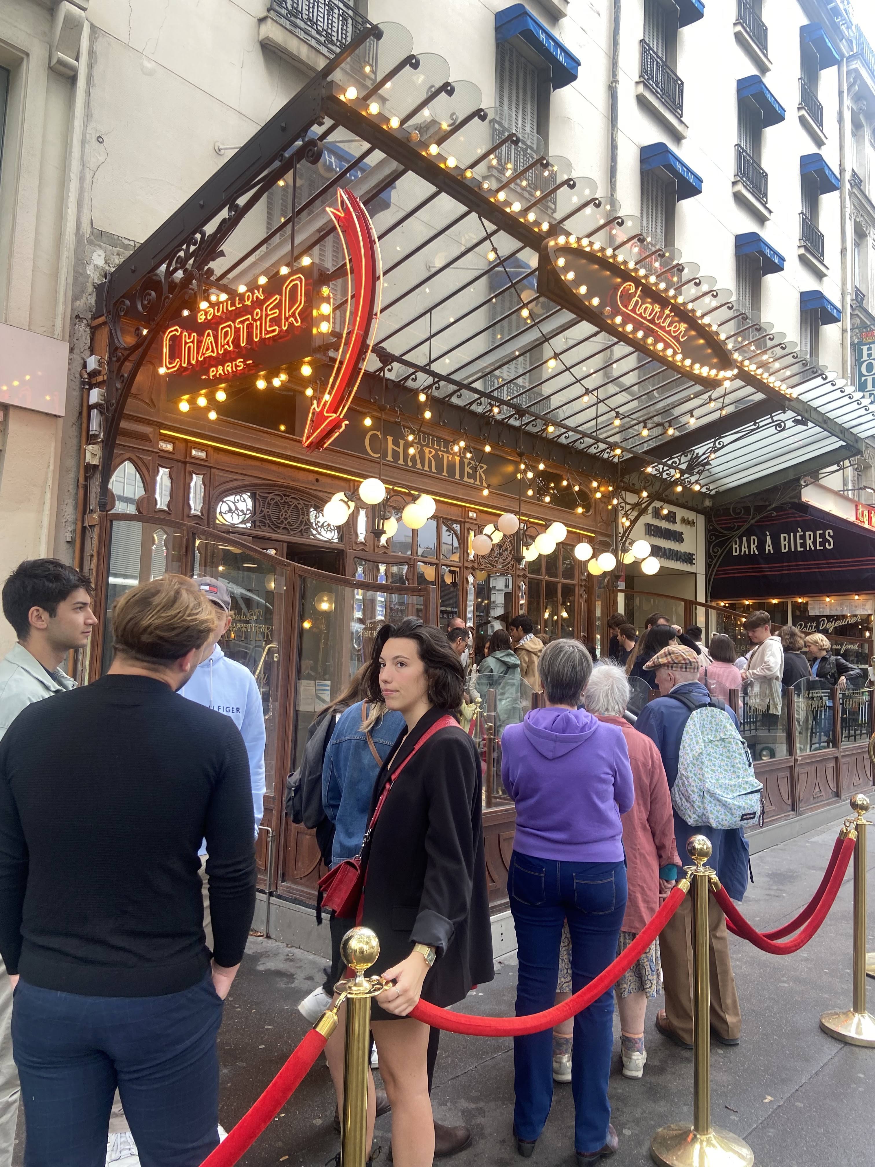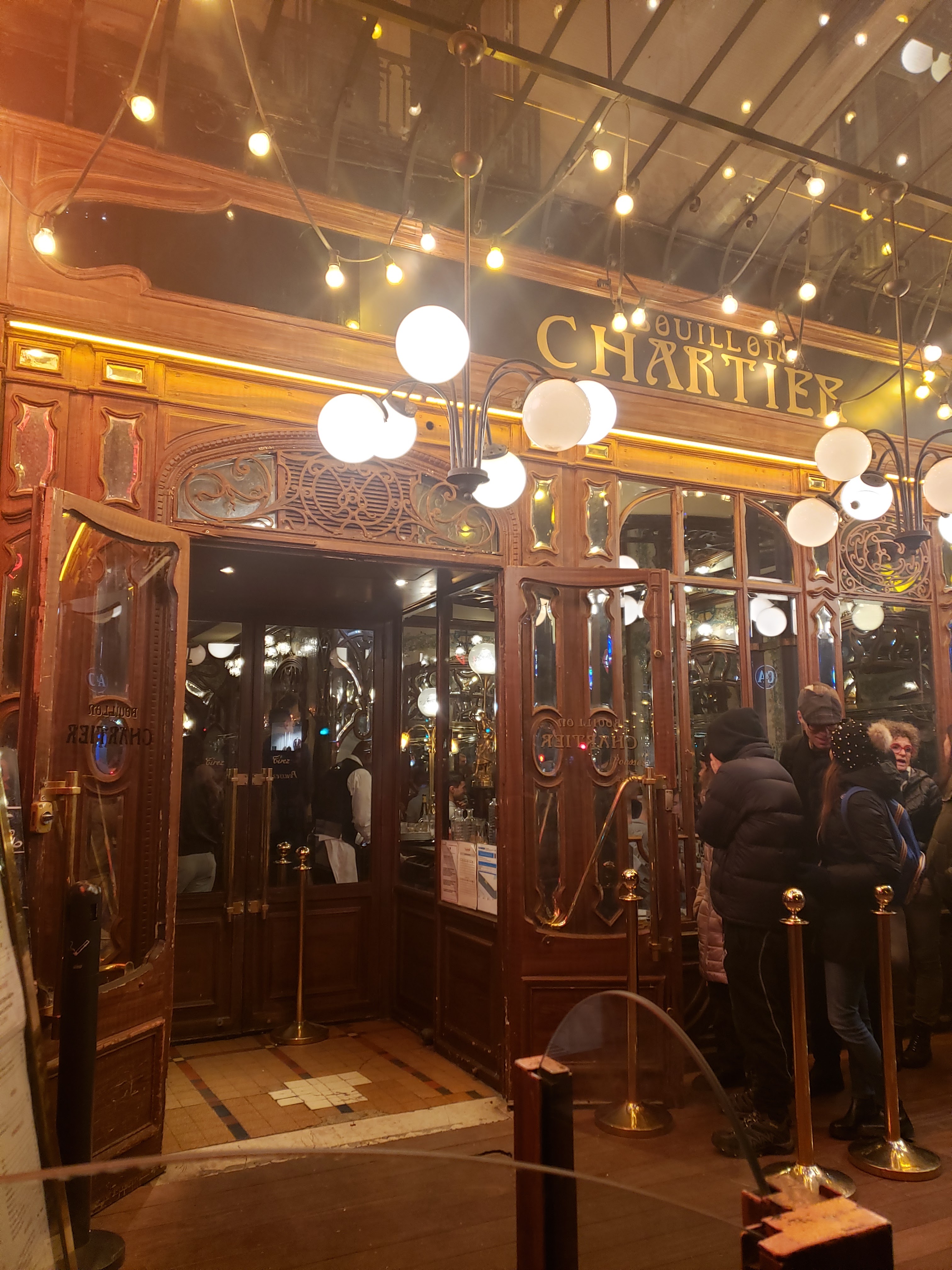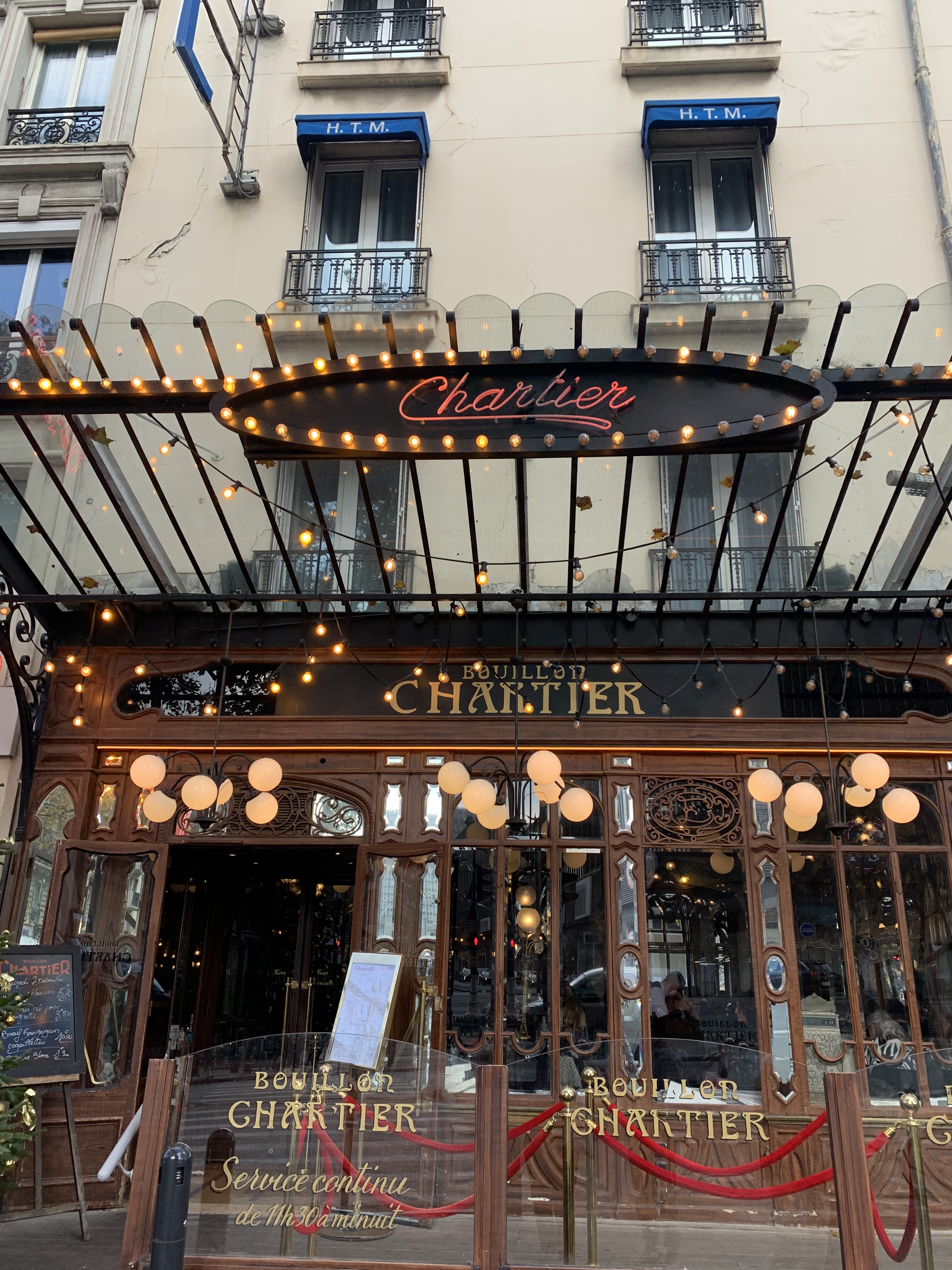 Vous voulez manger dans un fameux bouillon parisien, alors vous êtes à la bonne adresse, au plus ancien bouillon, chez chartier C'est grand, c'est bruyant, il y a de l'attente pour avoir une table, le service est rapide, les prix attractif, voilà, vous êtes dans l'ambiance du bouillon, et on aime, c'est authentique Le serveur qui écrit sur la nappe en papier pour faire la note, c'est une attraction Prévoyez entre 30 à 40 minutes d'attente aux heures de pointe pour avoir une table Vous l'aurez compris, les prix sont imbattables, une cuisine française et la qualité est la, je recommande ce petit détour dans un endroit typique
