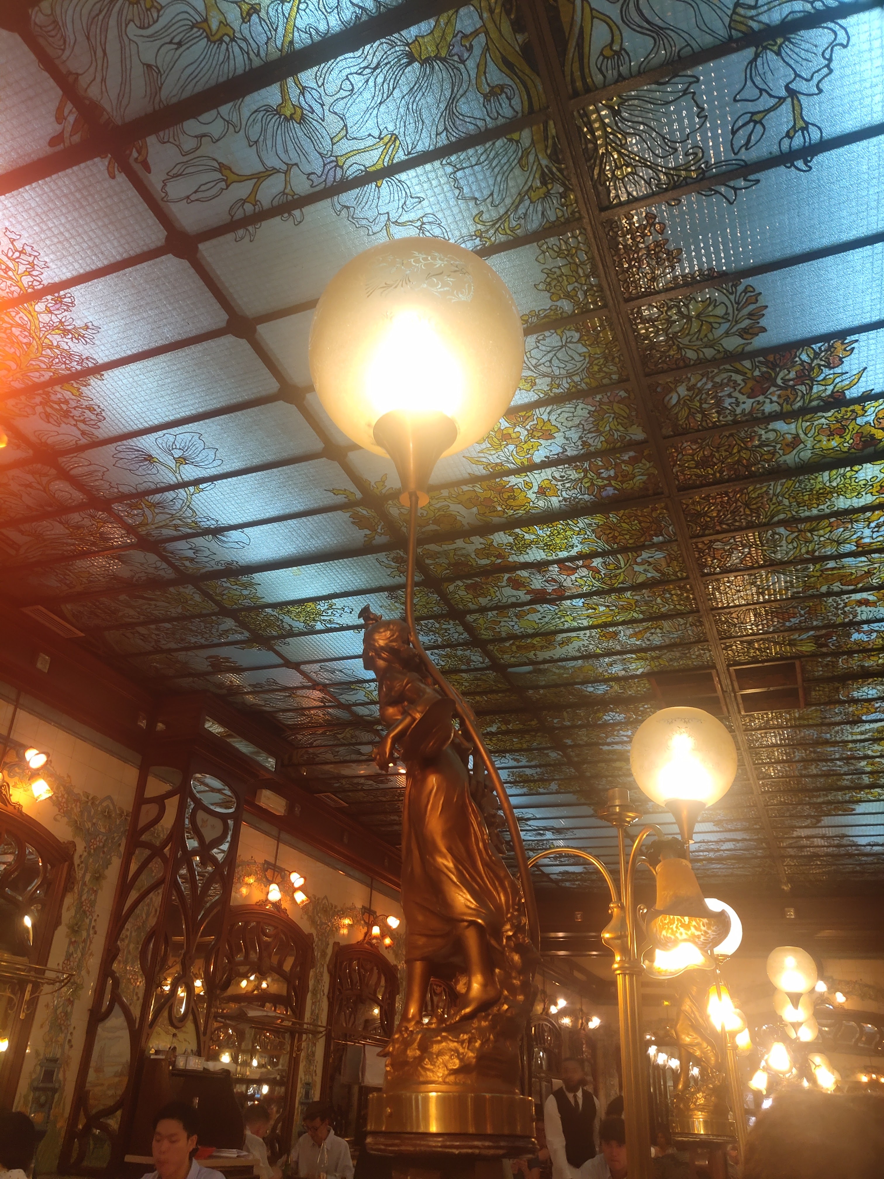 Alors cette brasserie n’est vraiment pas chère mais vraiment pas bonne non plus ! Le service est très très rapide et très peu aimable… c’est à essayer pour l’expérience et le décor magnifique mais n’y allez pas pour passer un moment tranquille autour d’un bon plat.