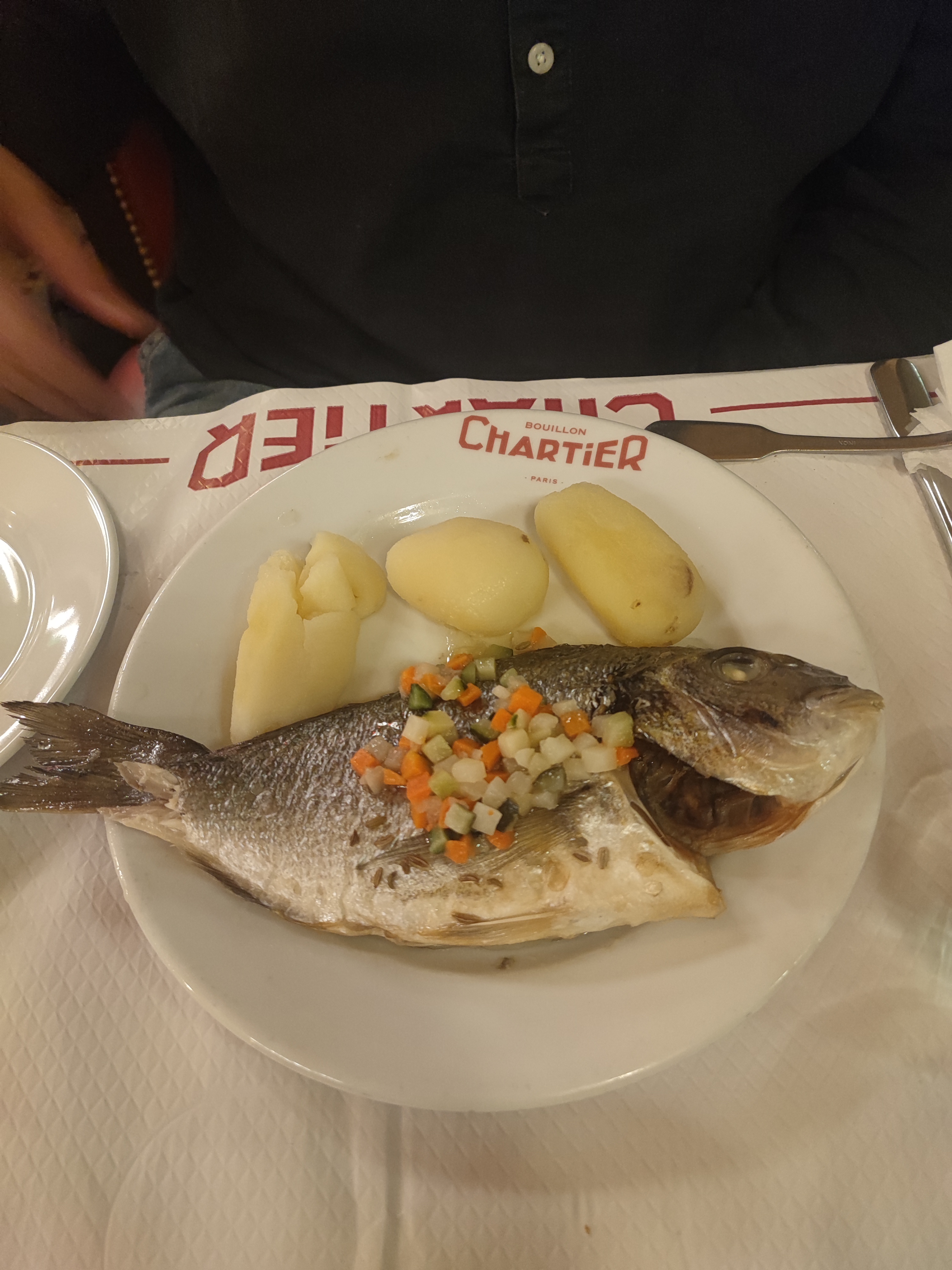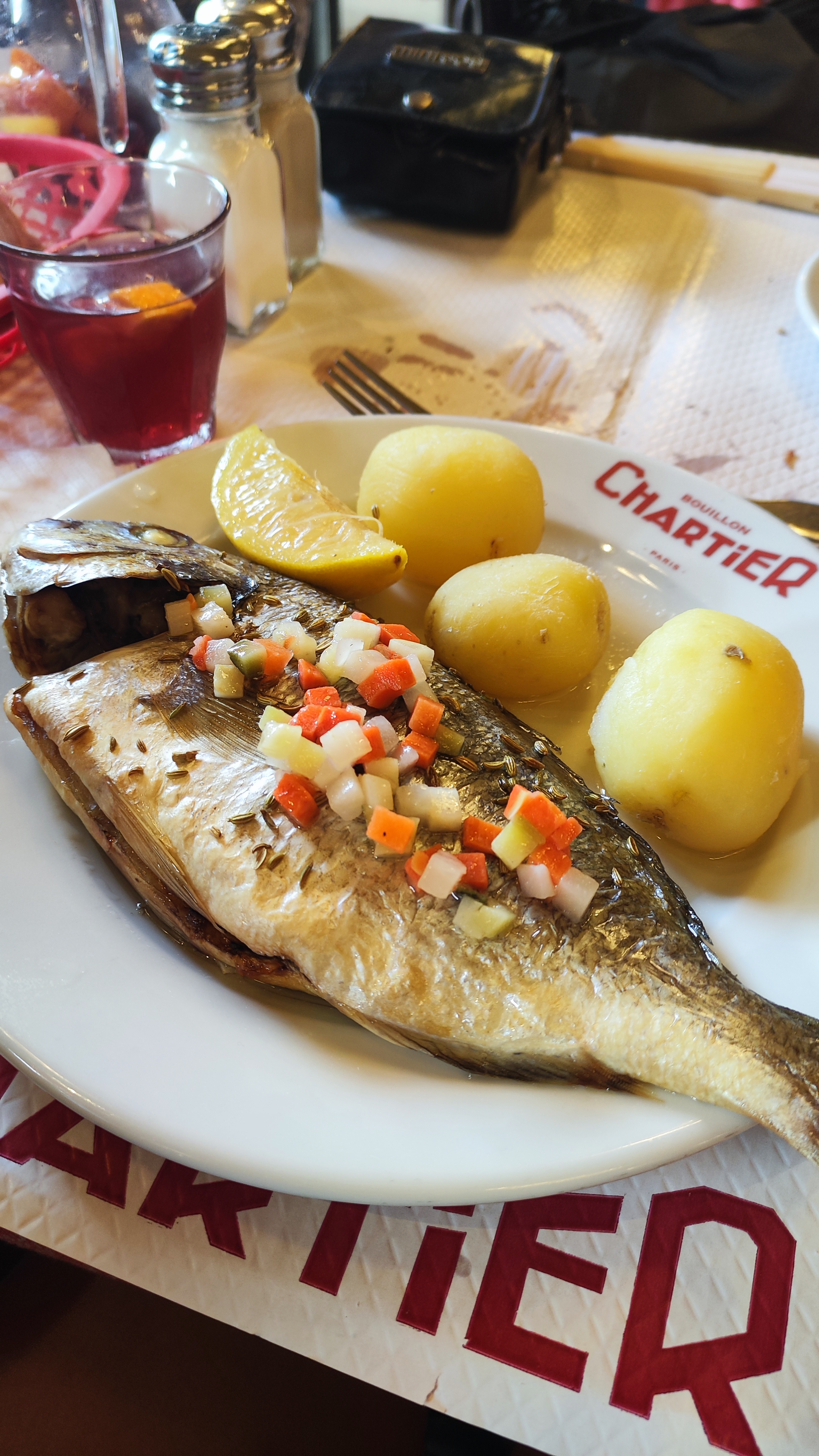 Toujours sympa d'aller à Chartier. Qualité prix c'est quand même top. Le poisson aurait pu être à mon goût meilleur mais tout le reste était quand même bon.