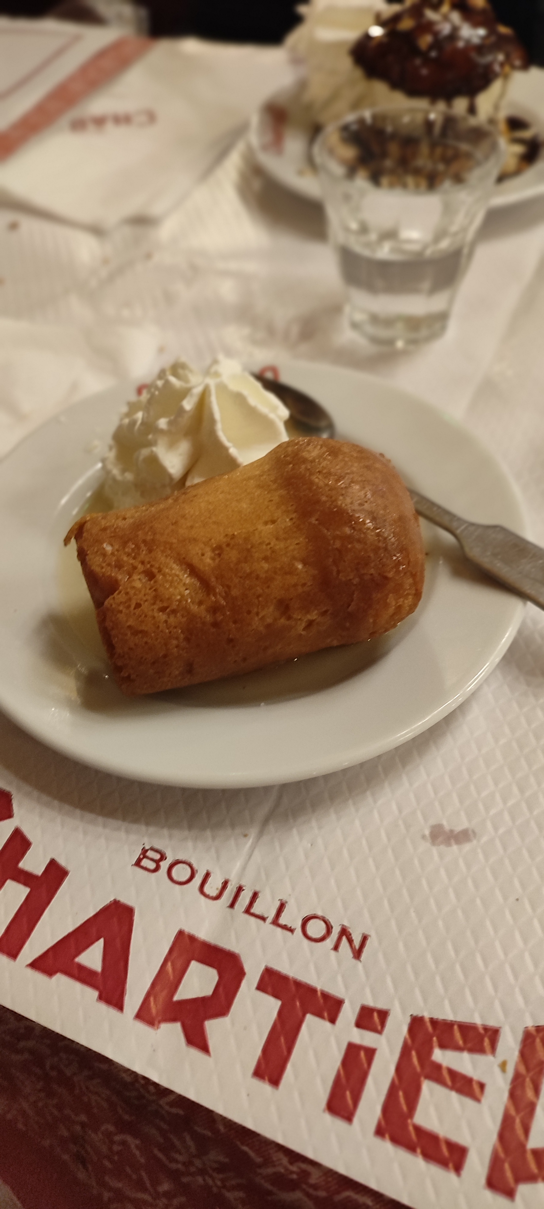 Première expérience de bouillon en famille, tout a été parfait, repas classique mais de bonne qualité, un service au top et rapide, que demander de plus. Rajouter des tarifs attractifs et tout est parfait. En photo, le baba au rhum qui tient toutes ses promesses!