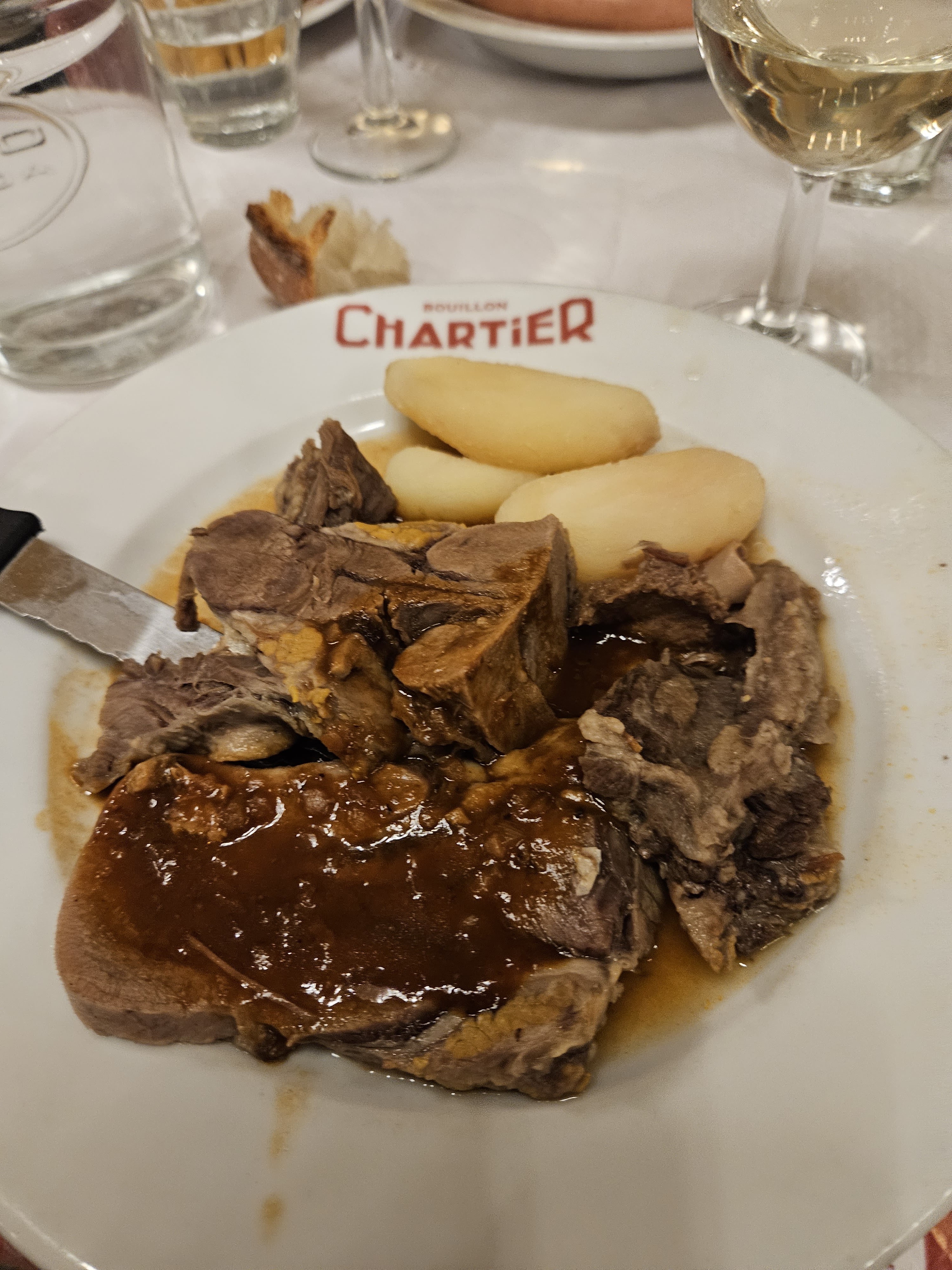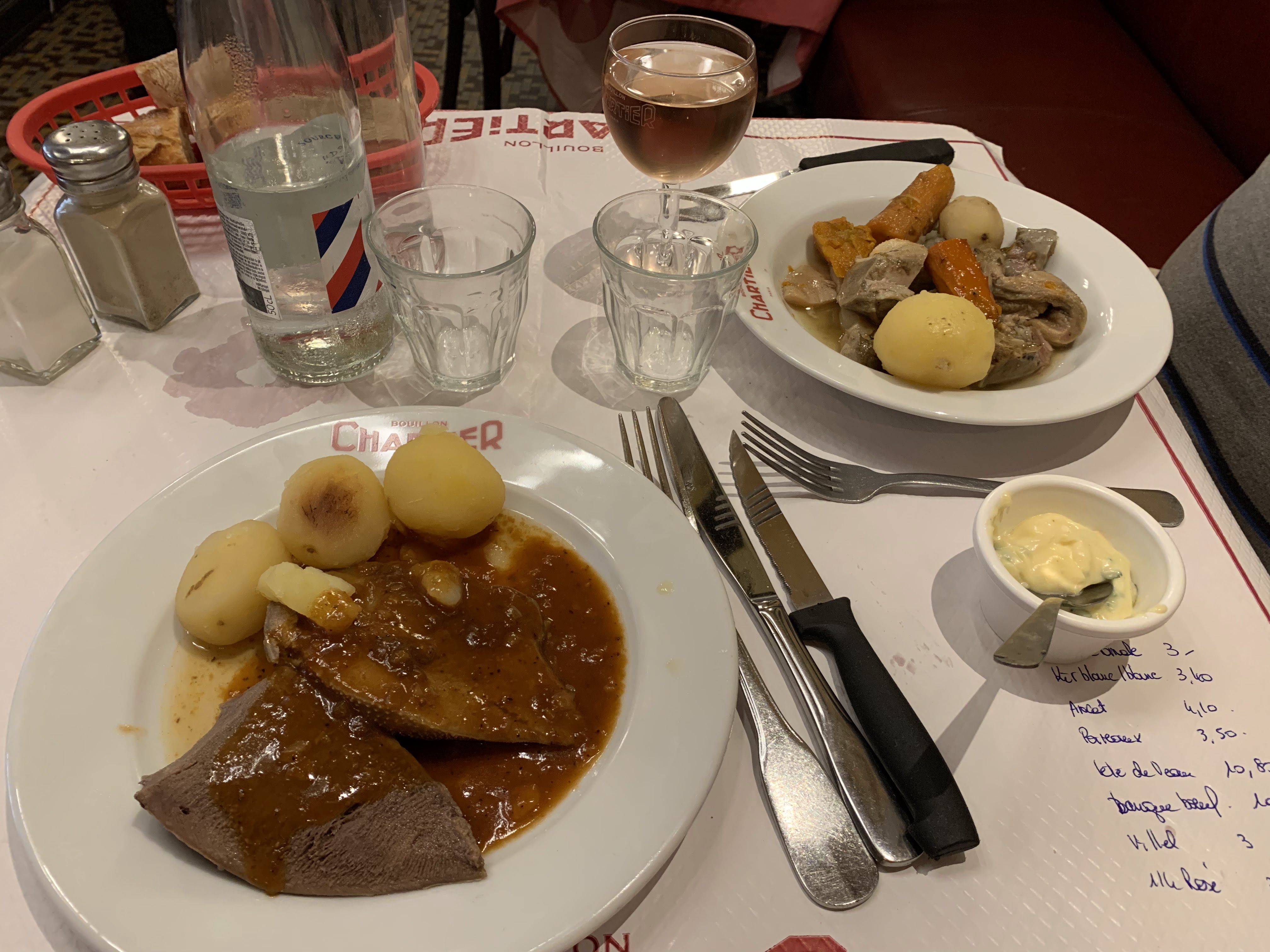 Quel plaisir, le temps d un déjeuner, en attendant un train, de replonger dans ce Paris éternel que Bouillon Chartier continue de faire vivre! Et la cuisine, sans chichi! Le Bourguignon est exactement celui que vous attendez, la coquillette cuite “ à la française” , merci!