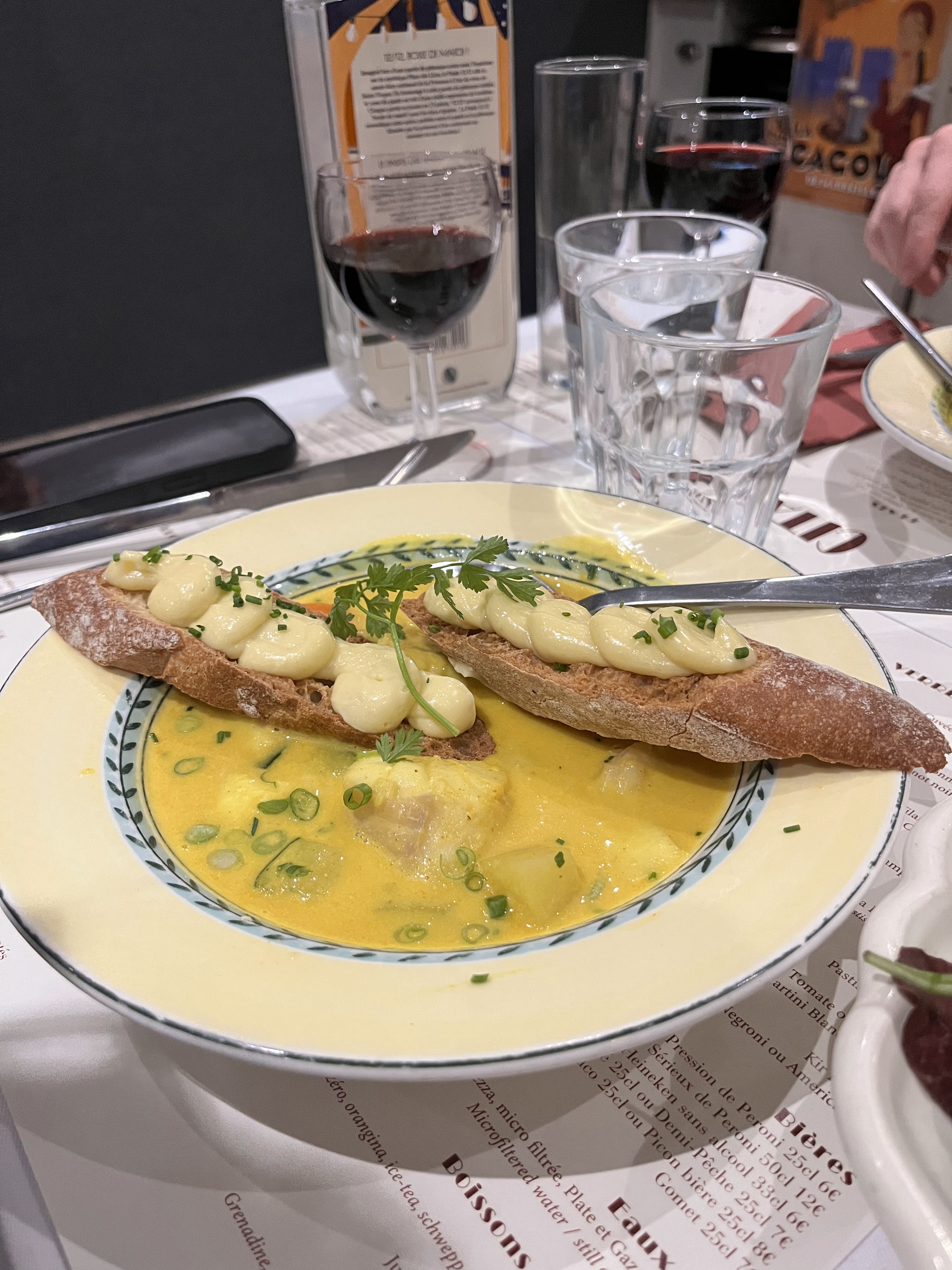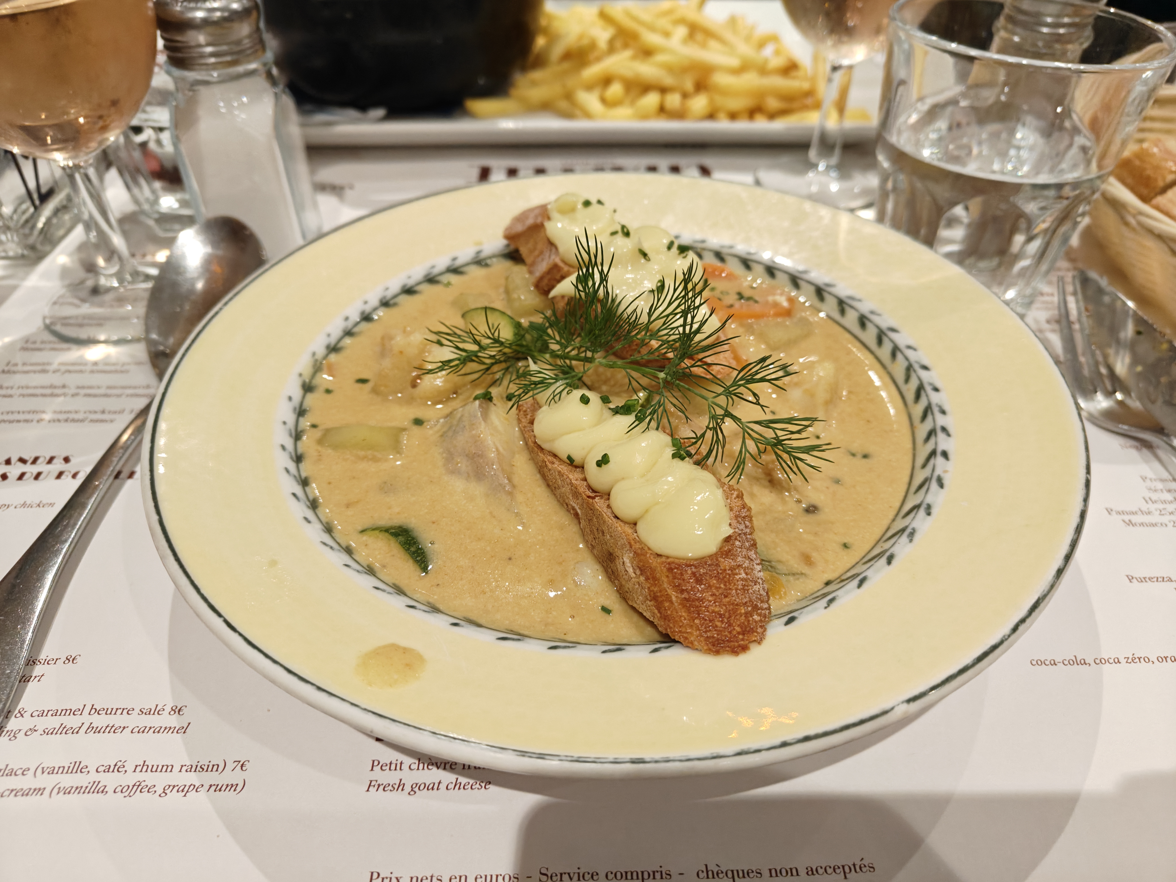 Cadre très agréable, serveurs très sympathiques mais plats de qualité moyenne. Viande pas tendre et le poisson de la petite bouillabaisse en quantité restreinte. C'est une soupe aux légumes.