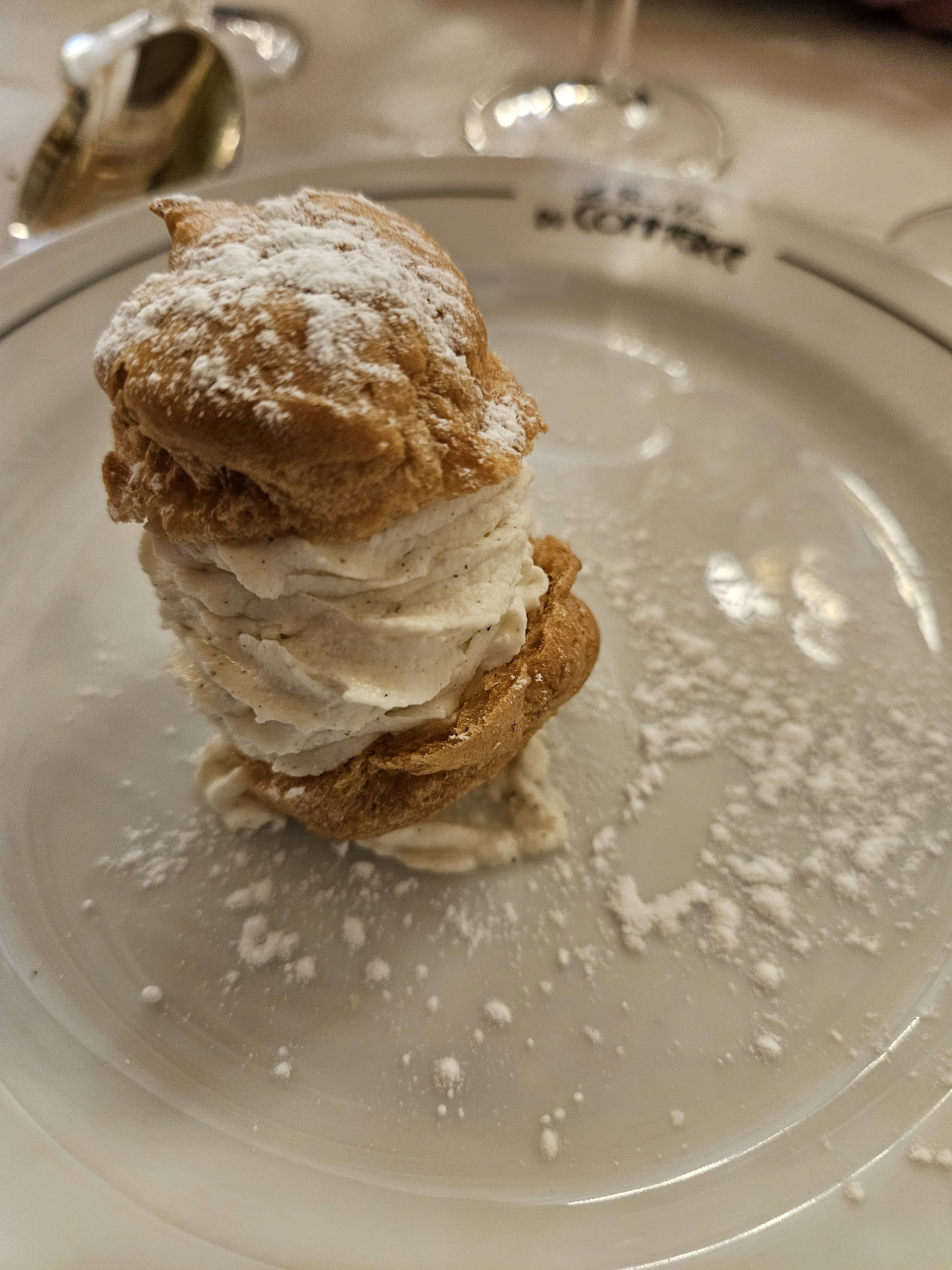 Un peu déçu pour cette première…j’ai pris le poulet au vinaigre qui devait être le suprême et non une cuisse… une assiette de 3 fromages à 8€ ( brie, bleu et comté) non local et la mousse au chocolat en dessert étalée dans l’assiette n’était pas du tout mais alors pas du tout présentable. Dommage. Le cadre est toujours aussi chic et majestueux. Le service est correct.