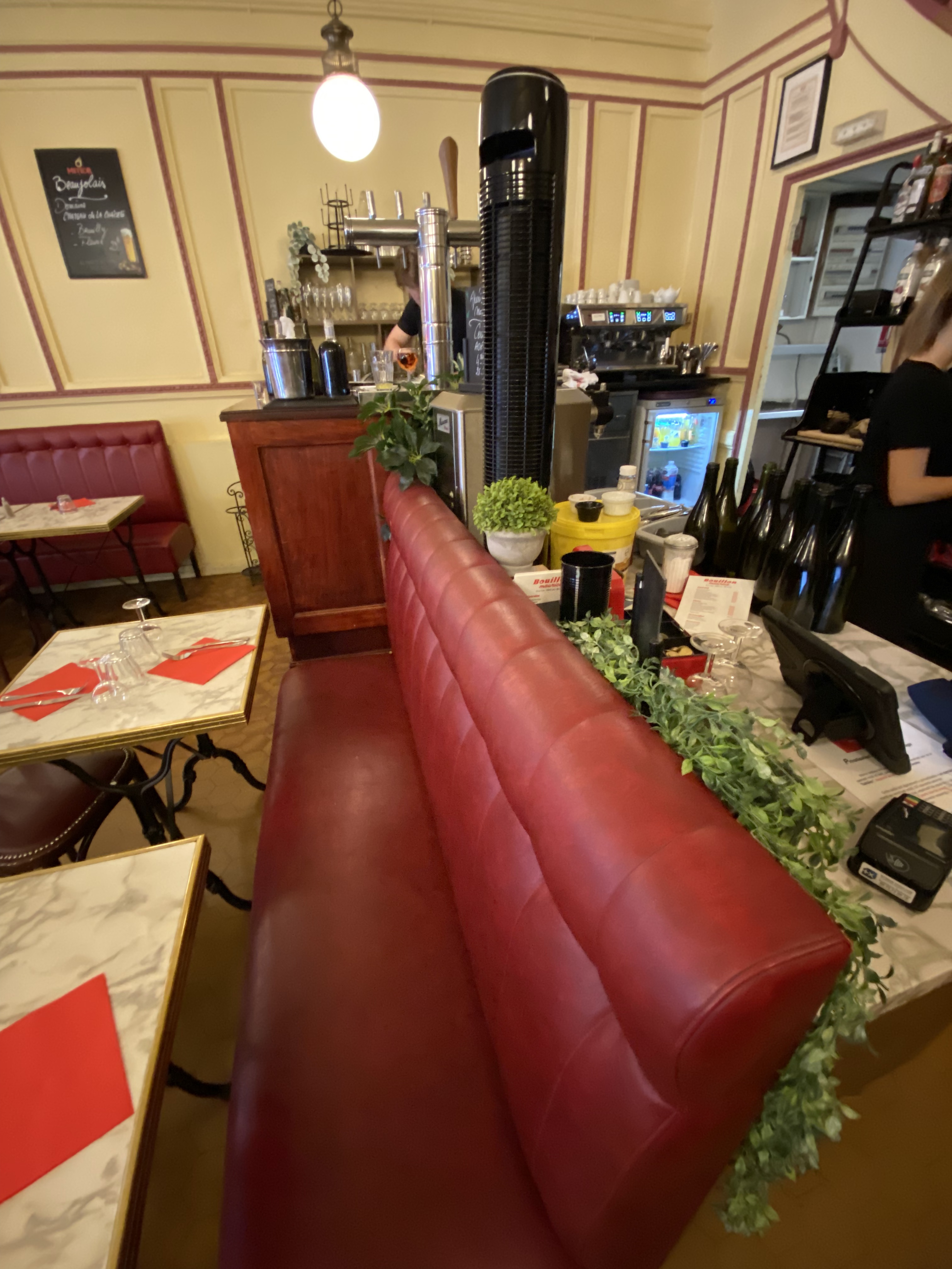 Esprit bouchon : tout le monde est proche et du coup papote ensemble. L' équipe est jeune et super agréable. Pleins de petites entrées comme de l'os à moelle, des poireaux-vinaigrette....de bons plats. Un très bon rapport qualité-prix. Je recommande 🙂