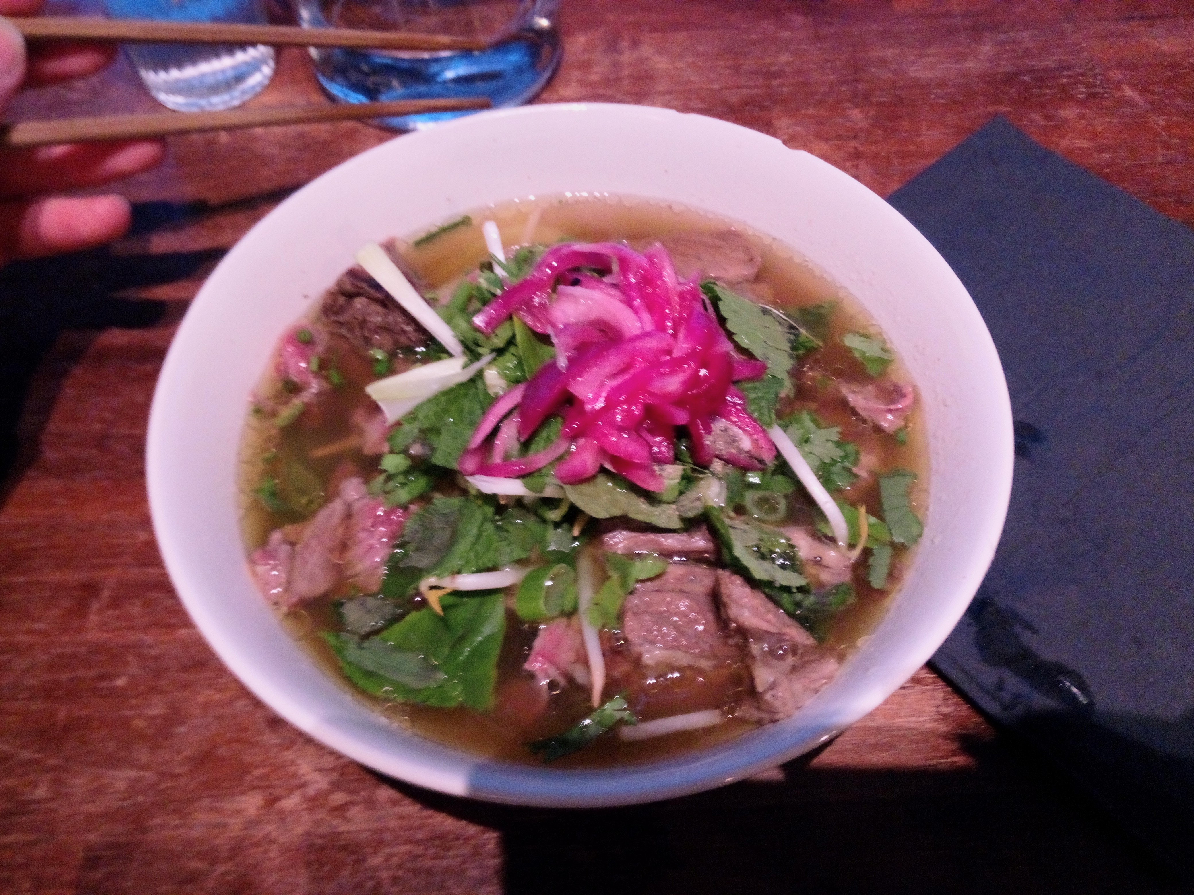 Pour une première visite je me suis régalé d' soupe vietnamienne. Je reviendrai pour gouter le reste des propositions culinaires. le petit plus que j aime aussi, un vin de la vallée du Douro .