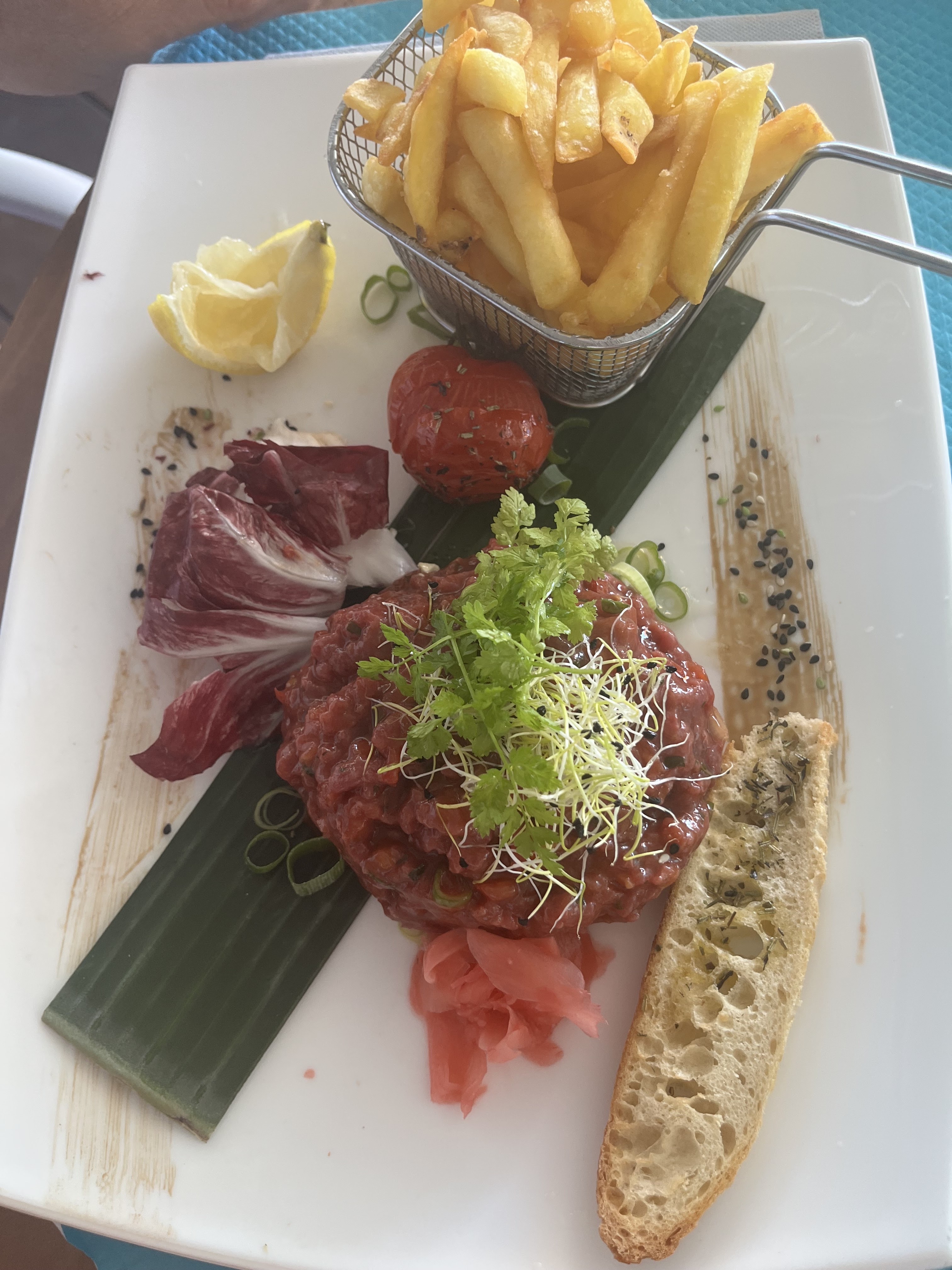 Le Burger est délicieux, c’est l’endroit parfait pour reprendre des forces après une baignade ! Même si la décoration et les couleurs sont un peu dépassées, ce qui est dans l’assiette est juste extra et le service est vraiment efficace ! J’y reviendrai dès que possible 😊