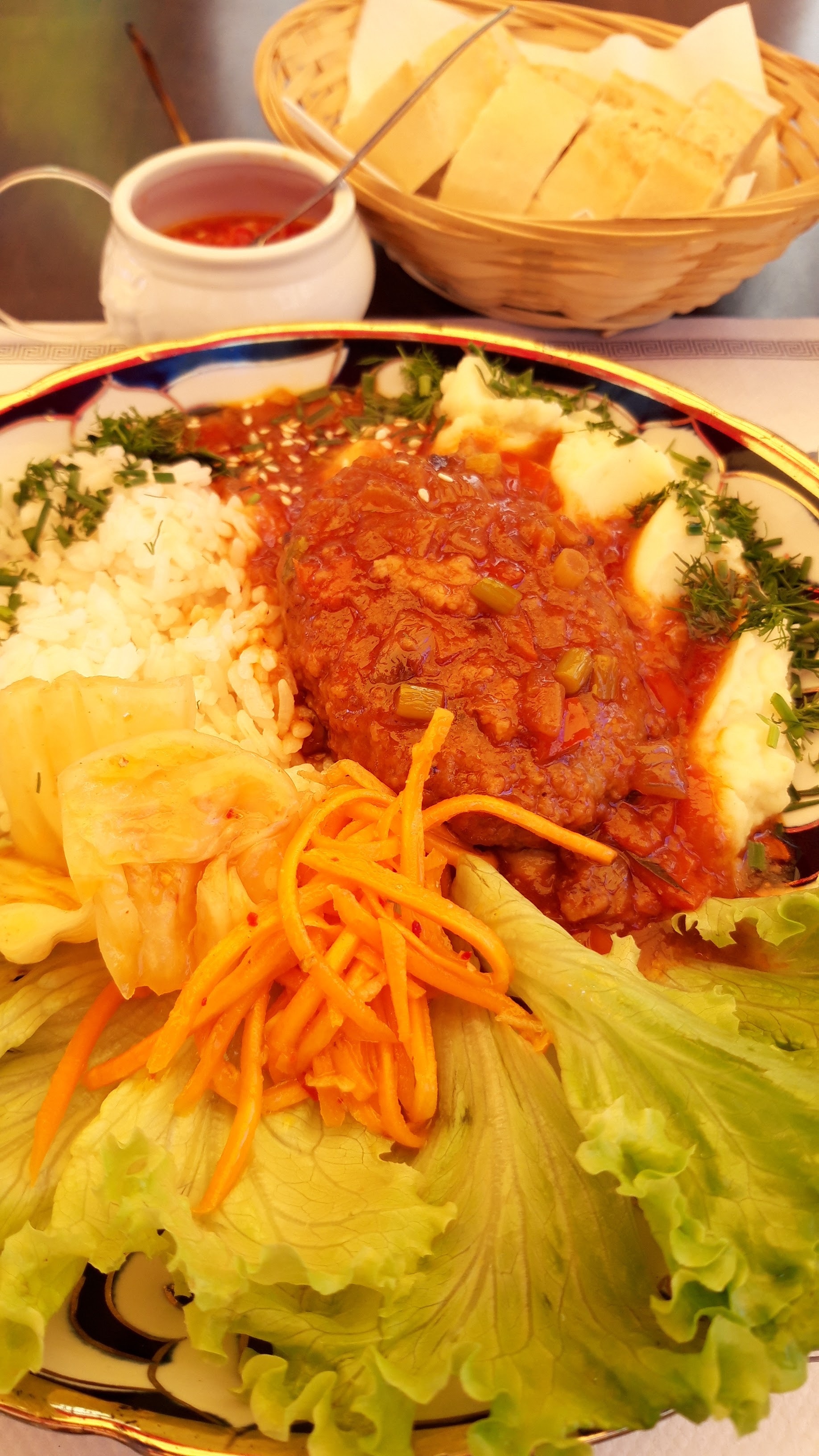 Excellent! Les plats sont un mélange entre exotisme et bien connu qui invite à une découverte de la cuisine de l'Asie centrale. (et de l'URSS :)) Le personnel est aussi très, très gentil et bien accueillant!😁 Restaurant très recommandable👍🏻