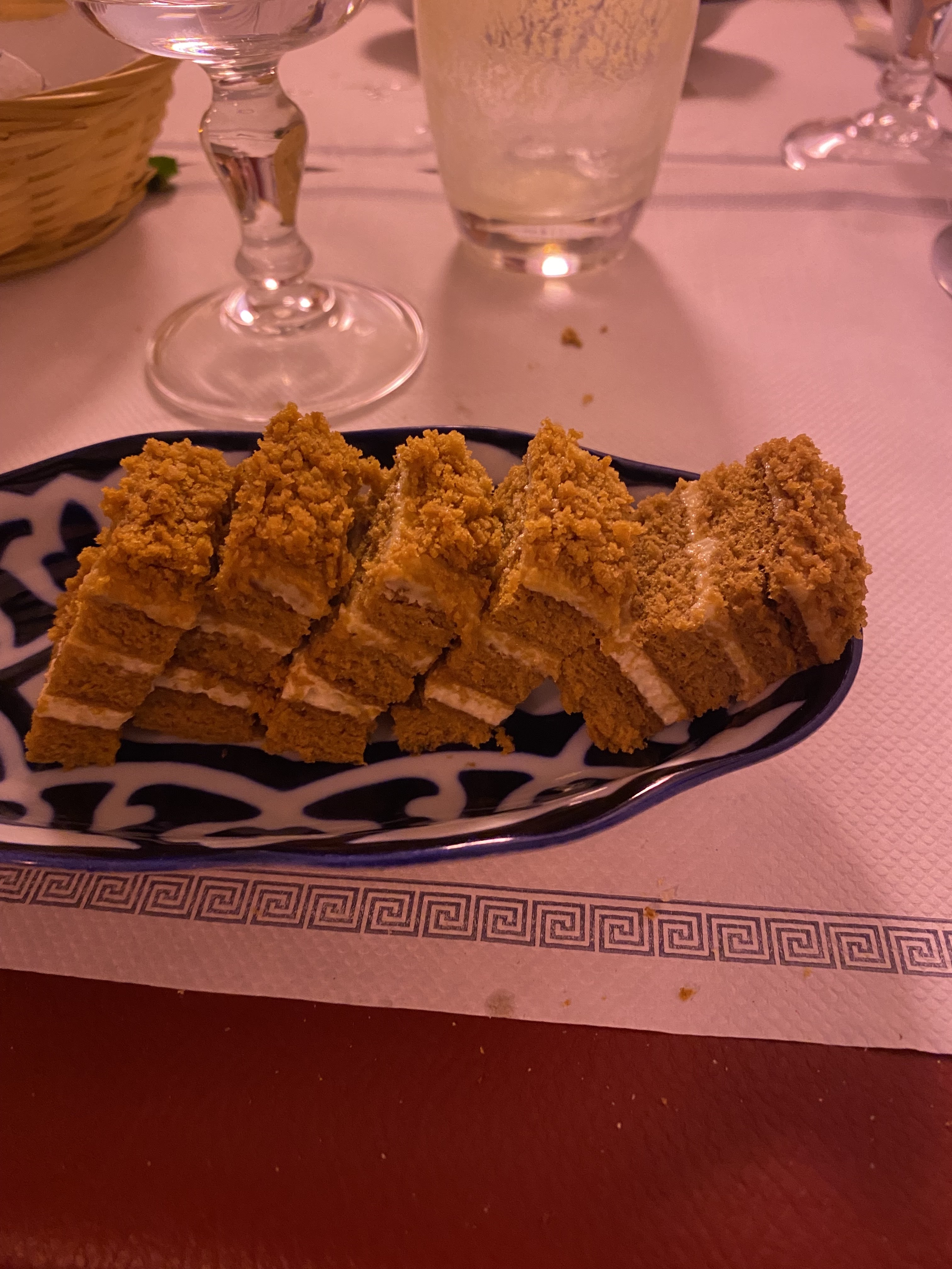 La première fois, j'ai commandé 2 grands gateaux dans ce restaurant. Je voulais deux gateaux typiques que j'avais l'habitude de manger en Russie. Et c'était un grand succès ! Tous les invités russes et français étaient plus que satisfaits ! J'ai adoré le gateau Pantcho et le Napoléon. Ca m'a donné envie de faire une grosse commande pour un anniversaire. Les plats étaient délicieux (Khanum, Plov et Golubtsi). En plus, les portions sont de taille ! Mes invités ont tous demandé les coordonnées du résto. Nous nous sommes régalés ! Bravo à la petite équipe familiale ;)