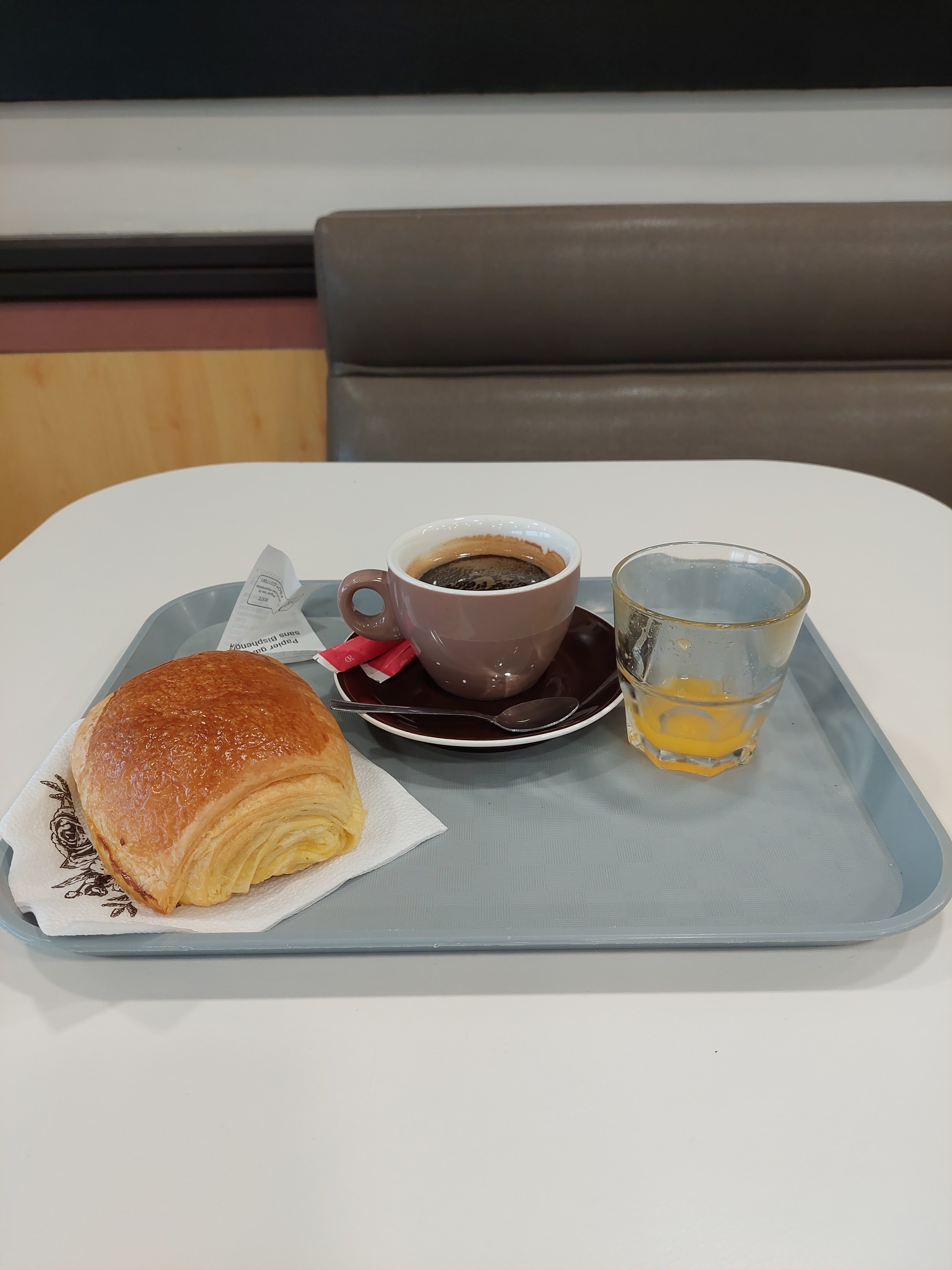 Parfait pour une petite pause café mais malheureusement les viennoiseries ( pains chocos / croissants ) sont assez banales ... Bon service à signaler
