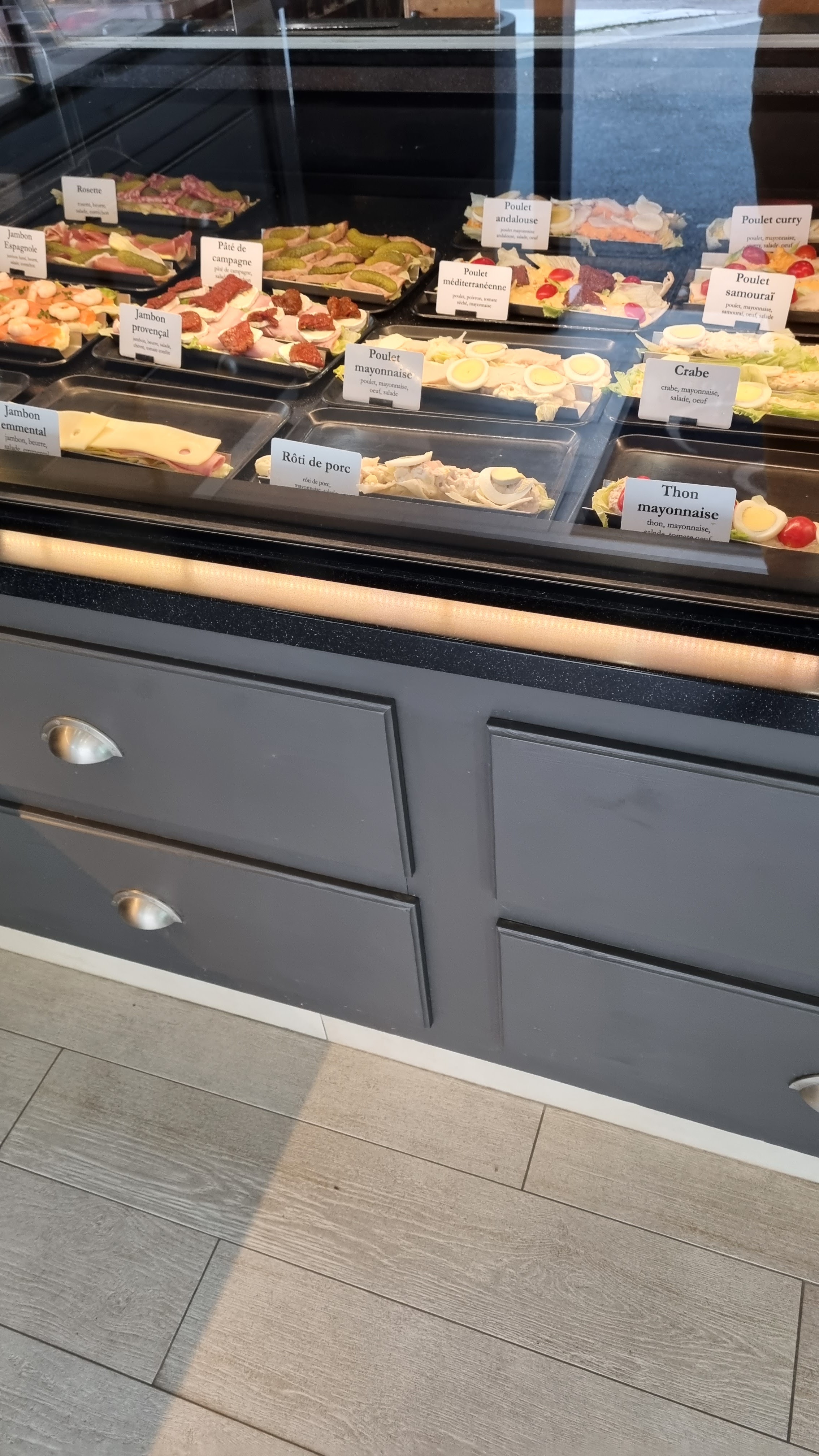 Magnifique boulangerie j'ai jamais vue se type de présentation pour sandwich