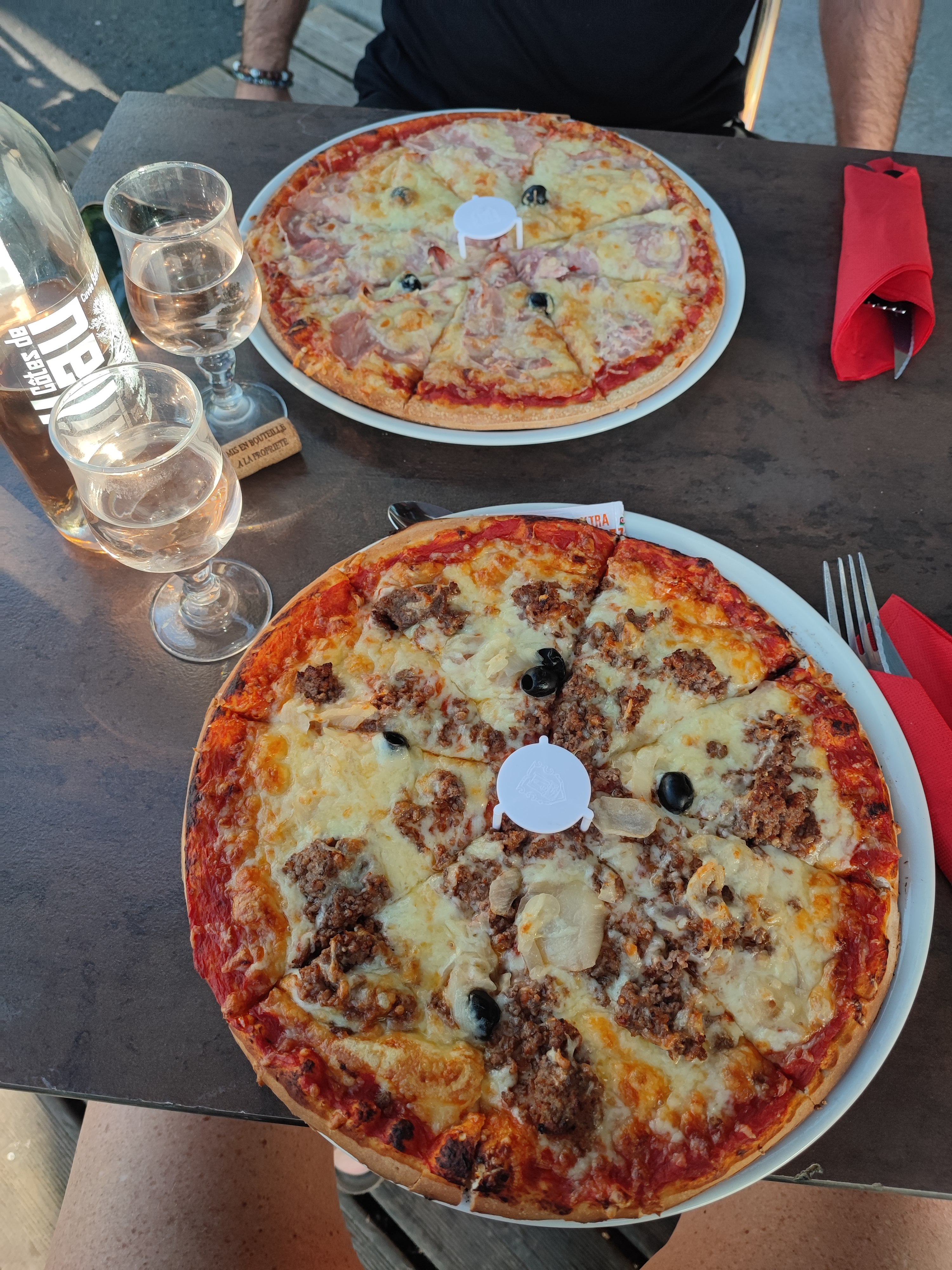 Très bonnes pizzas mais déçu car promo affichée 2 pizzas pour 16€ on apprend après coup que c'est seulement pour emporter (noté nulle part). Et la viande sur la pizza était froide malgré une cuisson dans four... donc surgelée initialement.