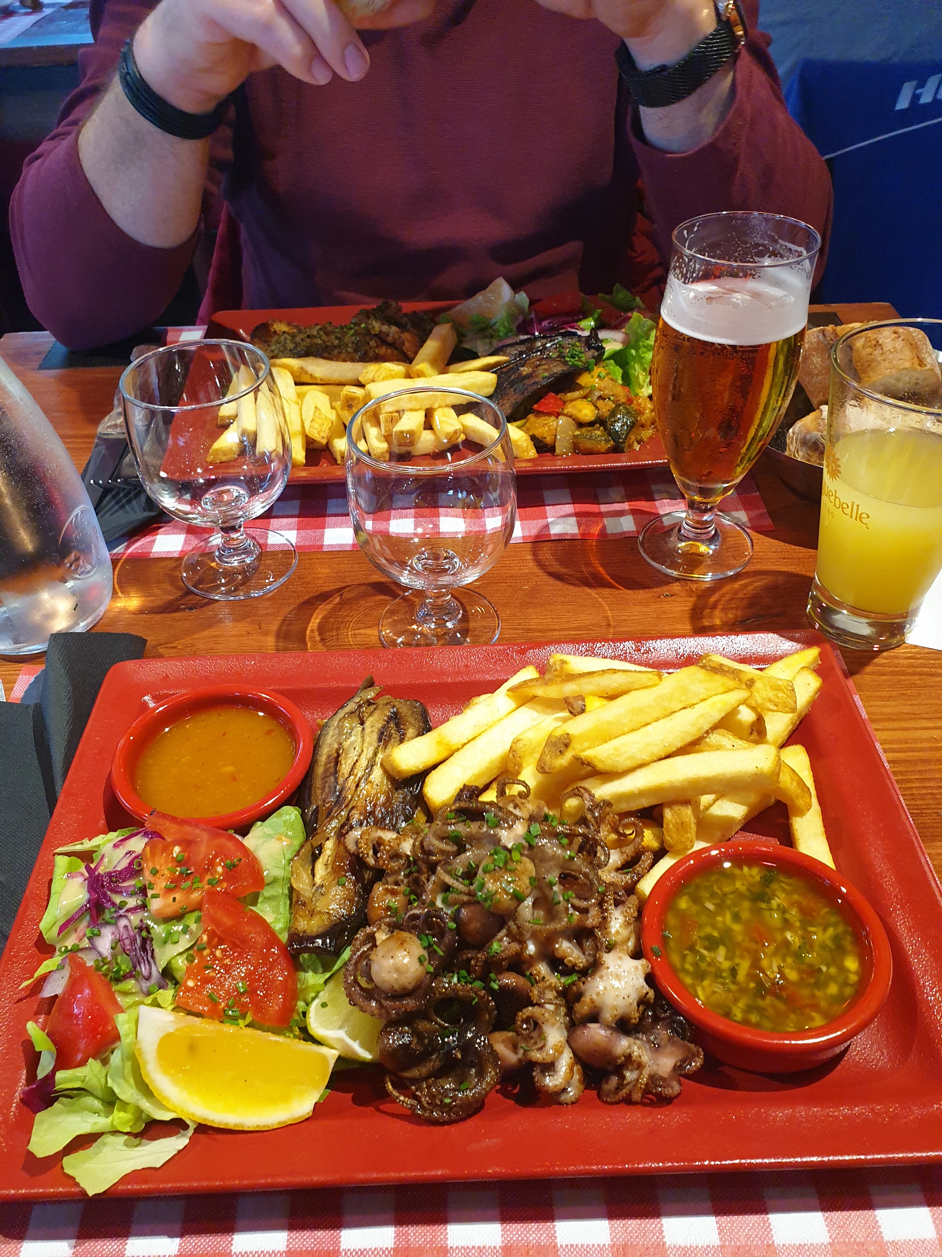 Nous nous sommes arrêté ce jour pour y manger belle découverte gustative j'ai adoré les petits poulpes 🐙 grillés un vrai régal très bien servi avec frites légumes et salade pareil pour mon conjoint qui a lui pris un pavé de morue au citron rien a redire pour un plat du jour c'était excellent 🤩👍🤩