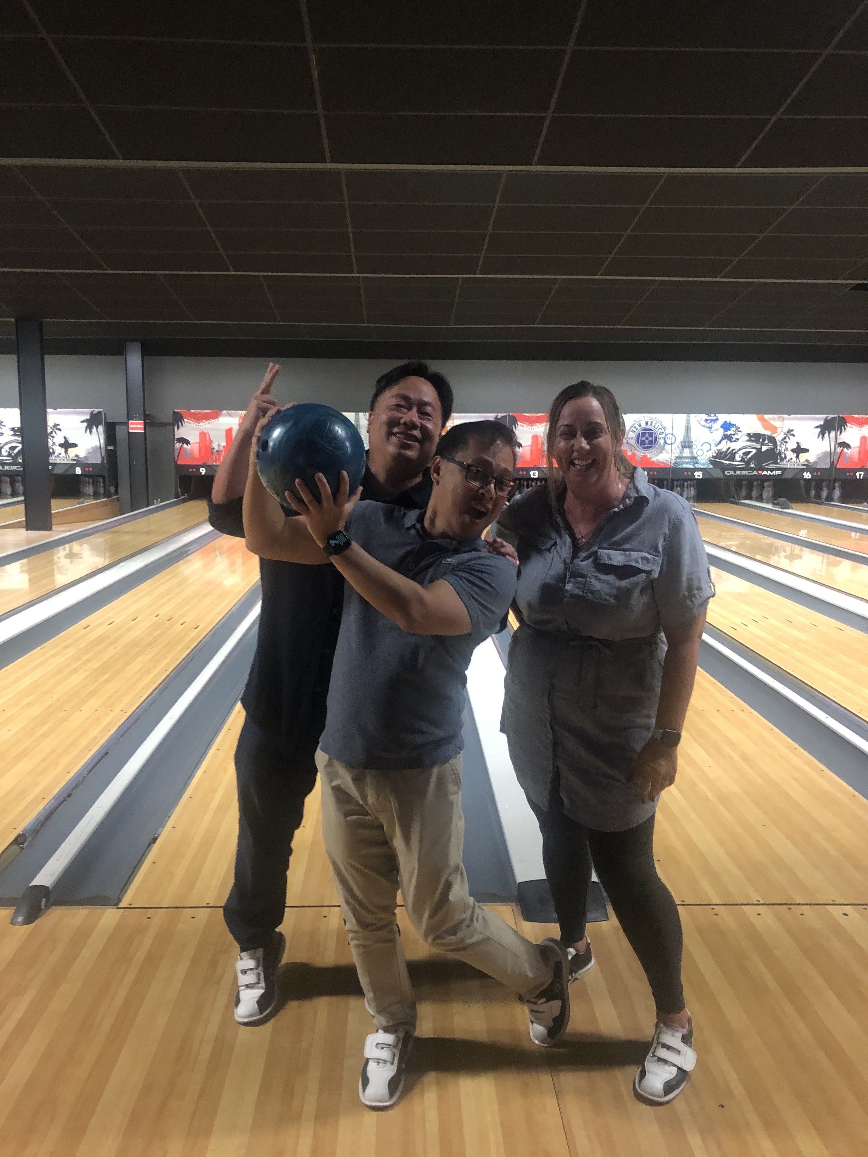 Nous étions un groupe de dix joueurs de bowling répartis sur deux pistes. Les chaussures de bowling m’ont toujours fait flipper et ici, ce n’est pas différent. Surtout, vous les remettez simplement une fois terminé, sans nettoyage, sans rien désinfecter. Le bowling était amusant ici et nous avons joué quelques jeux après comme un flipper et un sac de boxe. Il y a un bar de l'autre côté avec des boissons alcoolisées. L'endroit était très chaud et avait besoin d'un meilleur air. Nous avons eu un bon temps!