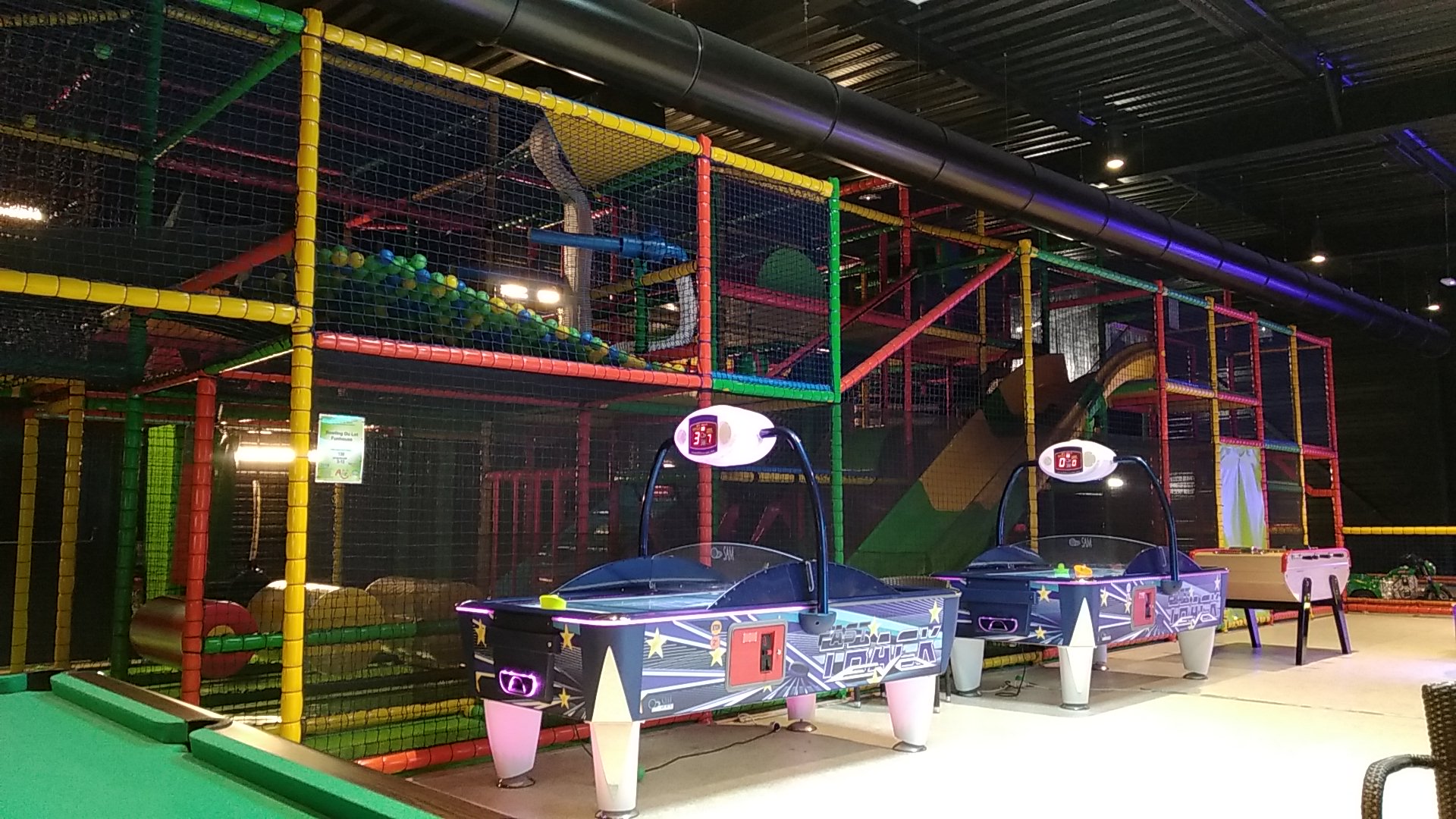 Nous habitons Cahors et nous sommes venus découvrir l'endroit avec nos enfants. Nous avons passé un super moment : repas délicieux avec une carte variée (camembert rôti au top, burger maison excellent, petite salade et frites maison en accompagnement...). Ca commençait bien ! Ensuite nous avons testé les arcades, et nous nous sommes éclatés : Air Hockey, Flippers, jeux vidéos... Il y en avait pour tous les goûts. Nos filles ont également pu aller jouer dans l'immense structure dédiée aux enfants avec toboggans et tout ce qu'il faut. Nous avons fini avec un petit bowling. Les équipements étaient en bon état, rien à redire !! Et les tarifs nous ont semblé tout à fait corrects. Super découverte !! On y reviendra volontiers avec nos amis !!