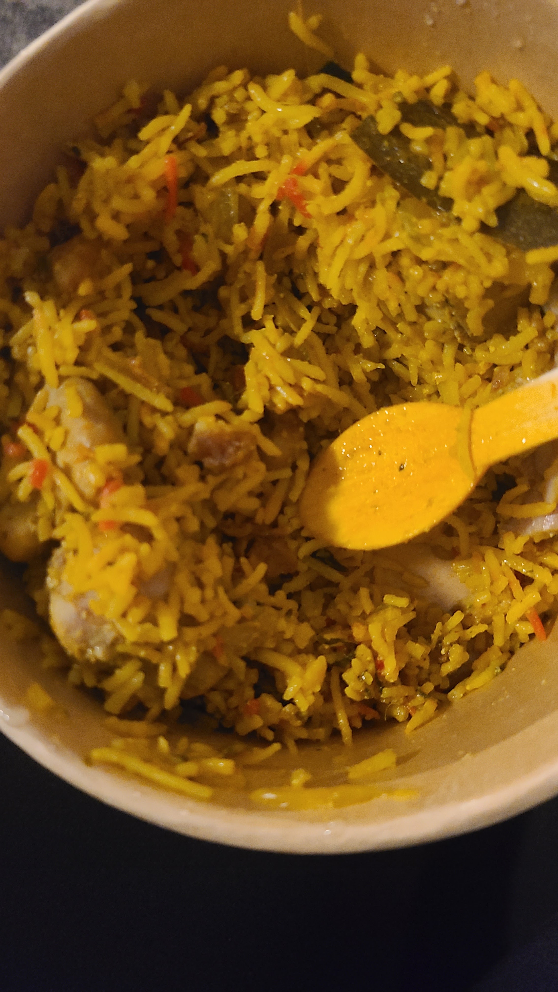 Nous avons commandé des plats à emporter et je dois dire que j'ai été très agréablement surpris par le biryani. C'était comme ce que maman avait fait, un authentique biryani tamil du sud de l'Inde. Nous avons aussi eu le dosa. J'ai vraiment adoré. :) Merci beaucoup.