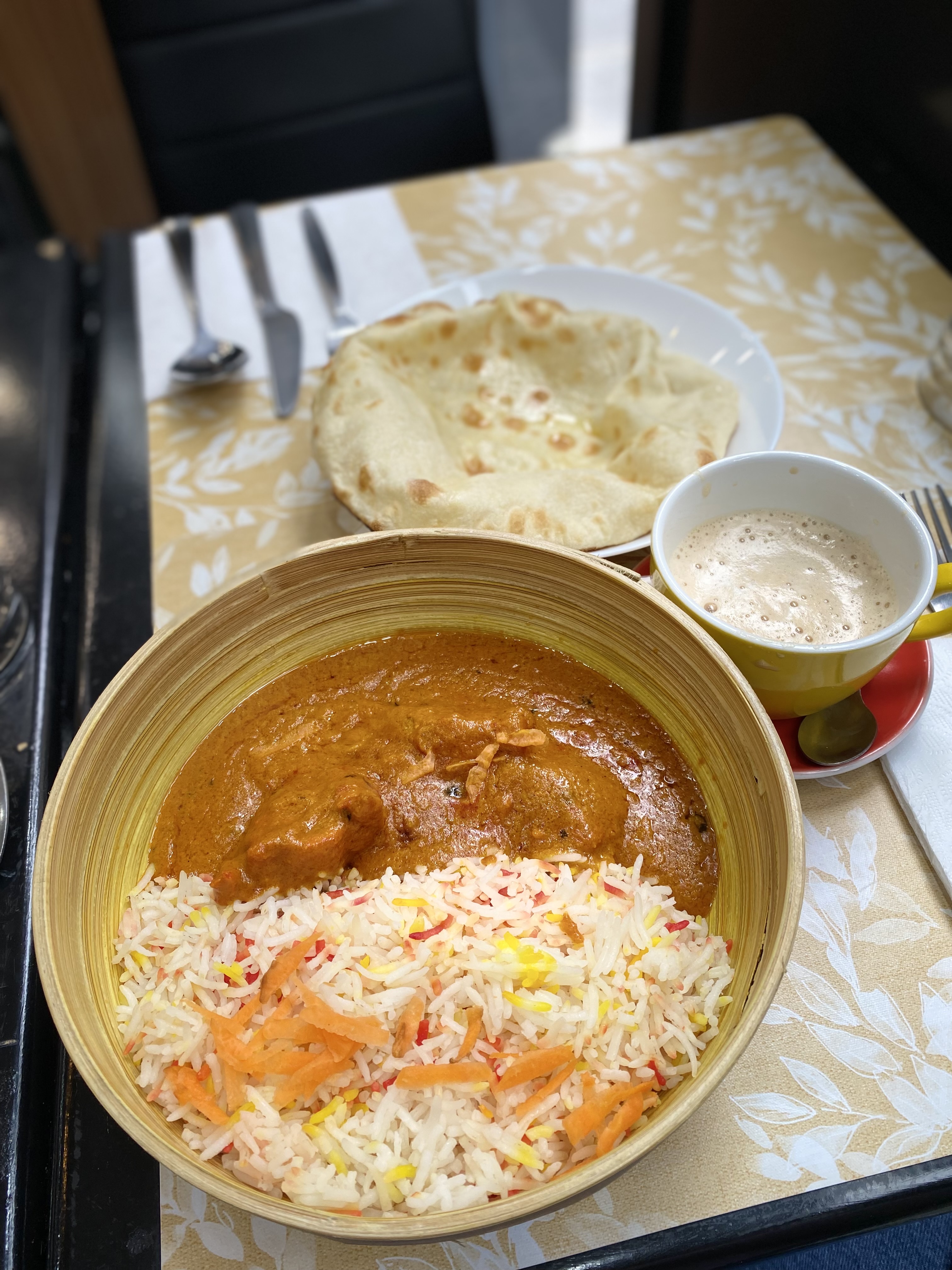 Nous avons essayé ce restaurant aujourd'hui. Nous avons essayé 3 types de plats différents, le biriani, le poulet au beurre et le palak paneer. Tous les articles étaient adorables. C’est peut-être parce que c’est un restaurant indien, c’est pourquoi tous les plats étaient sucrés. La taille du nan est également très petite par rapport au nan normal et également coûteuse. Si vous avez faim et souhaitez manger de la nourriture desi, je vous suggère de rechercher d'autres options. Si vous avez moins faim et souhaitez essayer quelque chose de léger, je vous le recommanderai. Comme toujours, « le thé était fantastique ». Mais il a fallu un certain temps pour avoir notre thé.