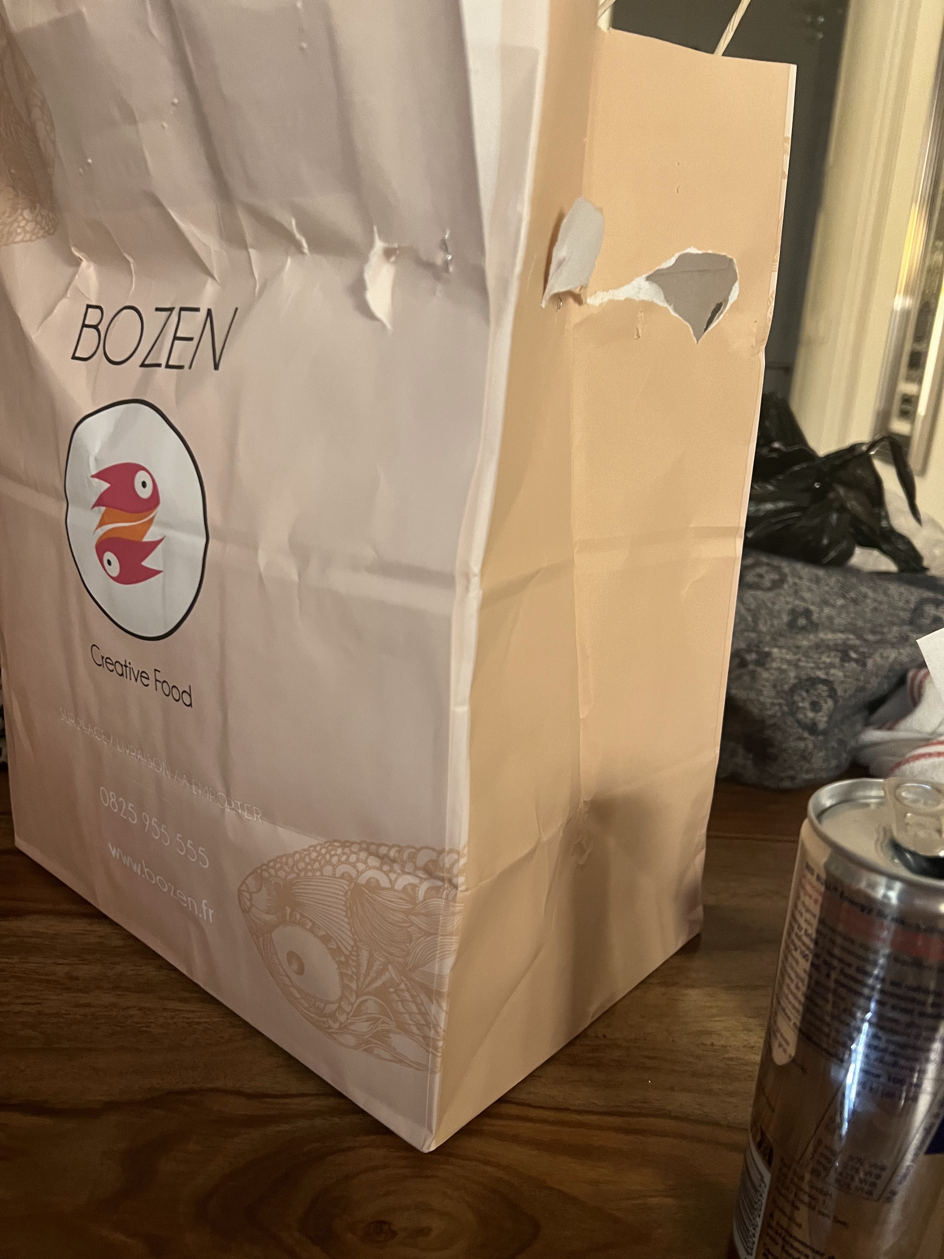 J’ai l’habitude de commander bozen sans soucis que je considérais comme le meilleur, mais le service a bien changé, aucune attention est portée sur la fraîcheur des produits comme le poisson cru et le cheese, la preuve j’ai commandé jeudi midi chez Bozen, j’ai vomi toute la soirée et la nuit et pourtant je ne suis pas fragile ou sensible sur l’alimentation, donc il fallait vraiment que ça soit quelque chose de fort pour me mettre dans un état pareil. Merci de m’avoir dégouté de mon repas préféré à vie. Ps: quand on vous appelle pour signaler une faute commise la moindre des choses c’est d’être aimable.