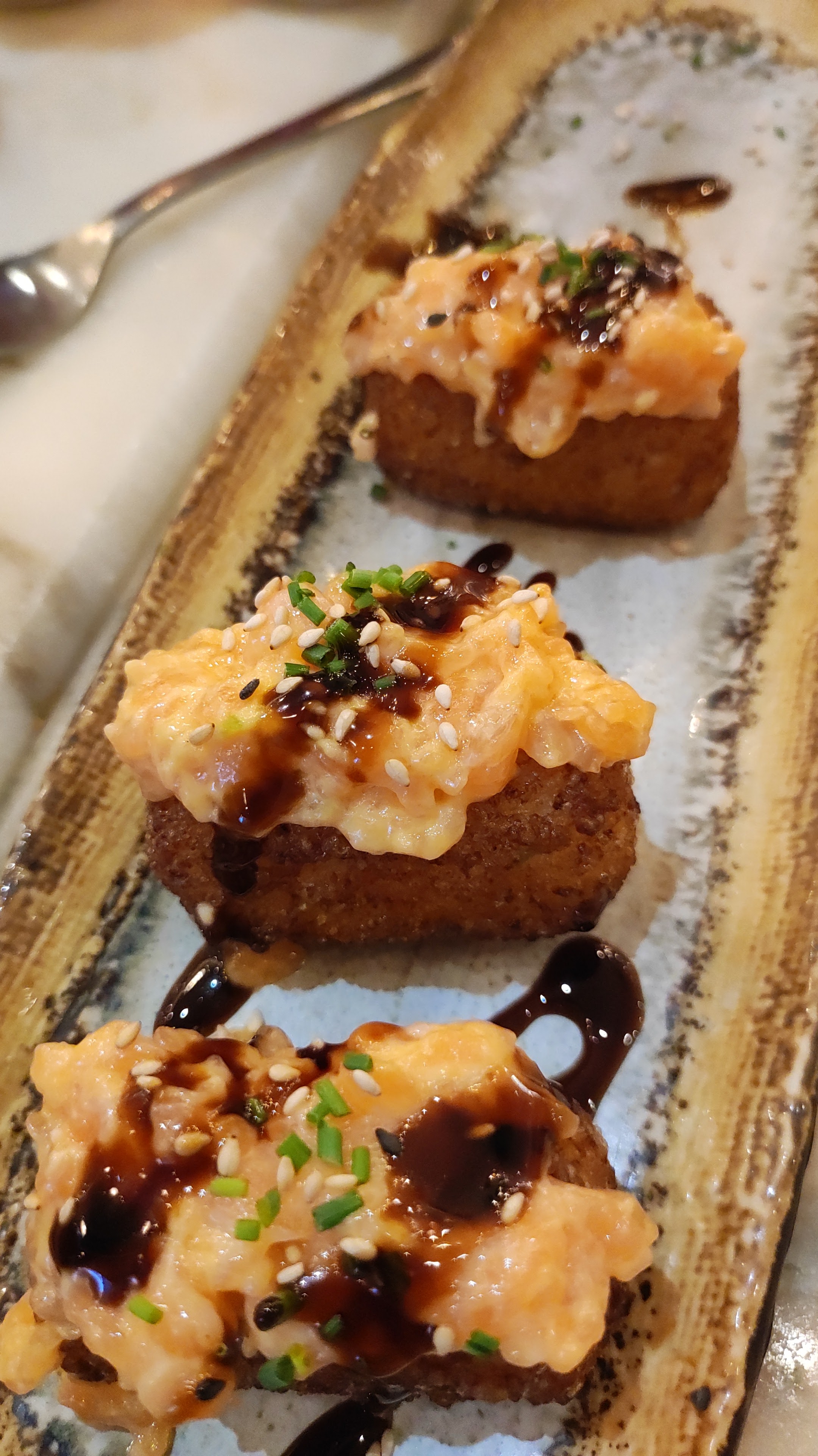 Onigiri sont magnifiques, tendres et croustillants en même temps, accompagnés des sauces parfaitement associées Les sushis, printemps rolls et californiens sont impeccables, faits à la base de produits de qualité, la présentation est juste irréprochable. Le seul bémol : les TR ne sont pas acceptés le soir :( Suggestion c’est de compléter le menu avec une soupe ou une petite salade, ça serait vraiment parfait :)