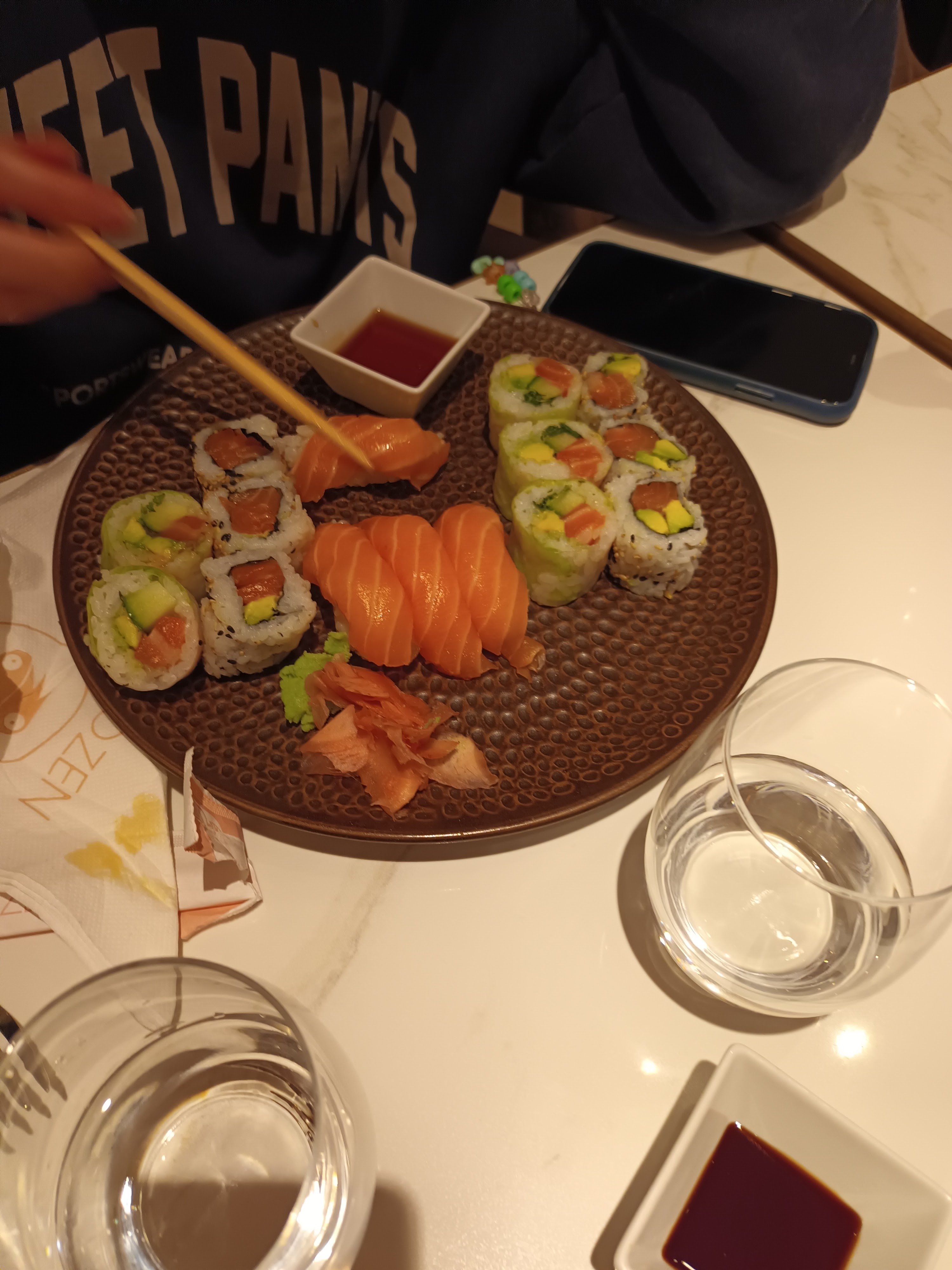 Mes parents de 85 et 86ans ont ete mercredi avec des amis ma mere a demandé 3 sushi la serveuse a ramené 3 plats de 8 sushis c était évidemment tres facile de comprendre que ce n était pas 3 *8 sushis en tenant compte de la commande globale Elle a refusé de reprendre 2 plats sur 3 Belle mentalité !! A éviter