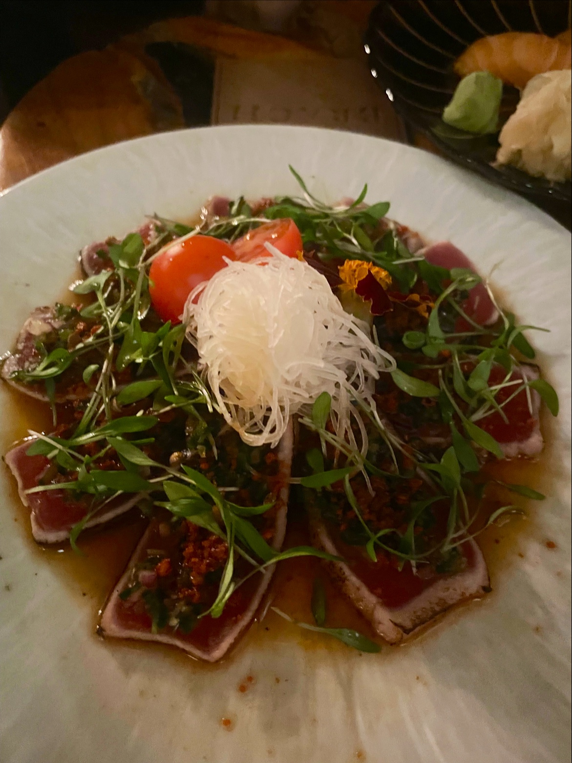 Pas toujours facile d avoir de la place, pensez à réserver. Très beaux décors dans la salle et dans l assiette, pour nous ce fut un régal pour ce thon cru avec du riz iranien, très bon dessert qui sont exposés et que l on va choisir