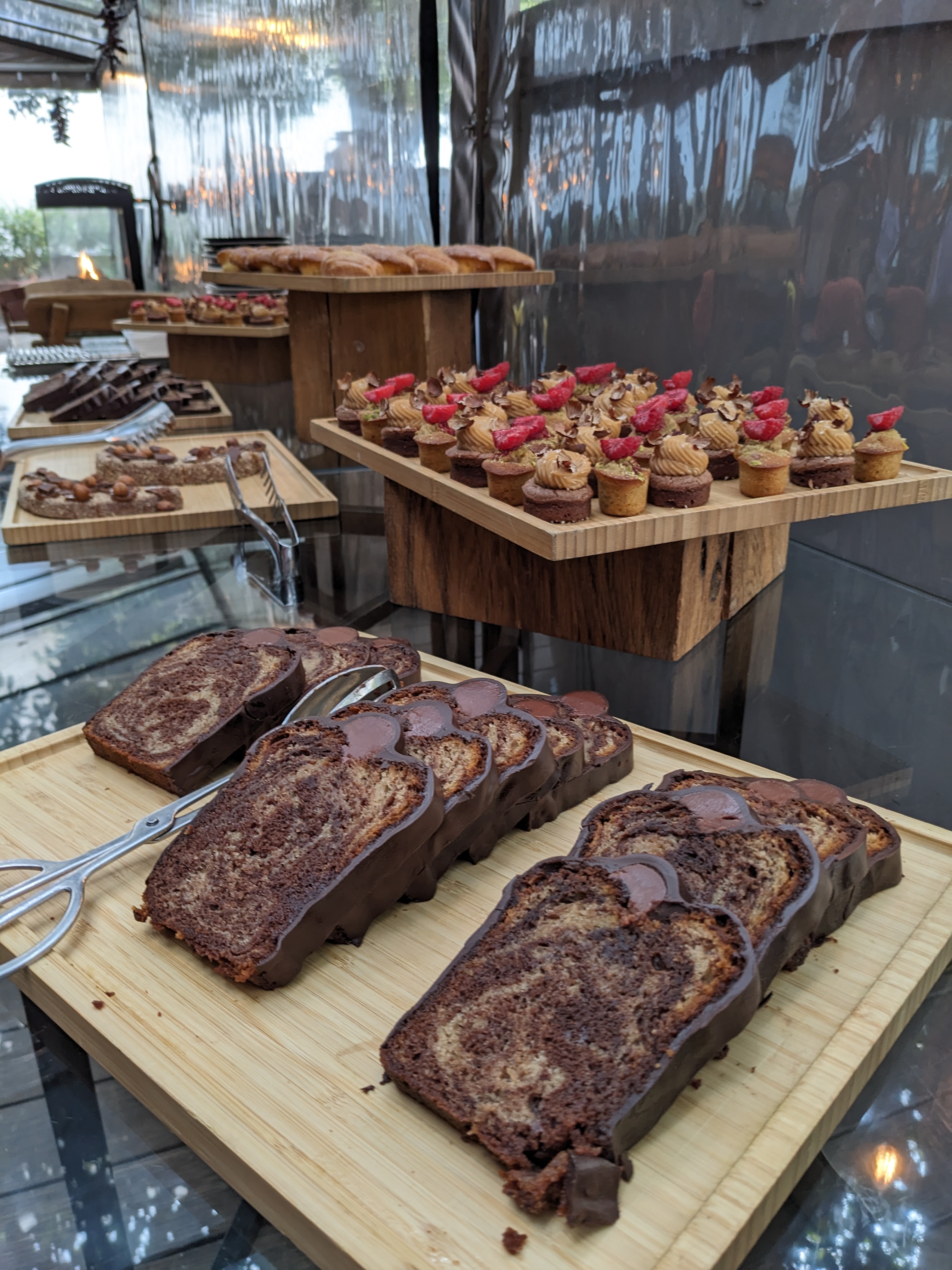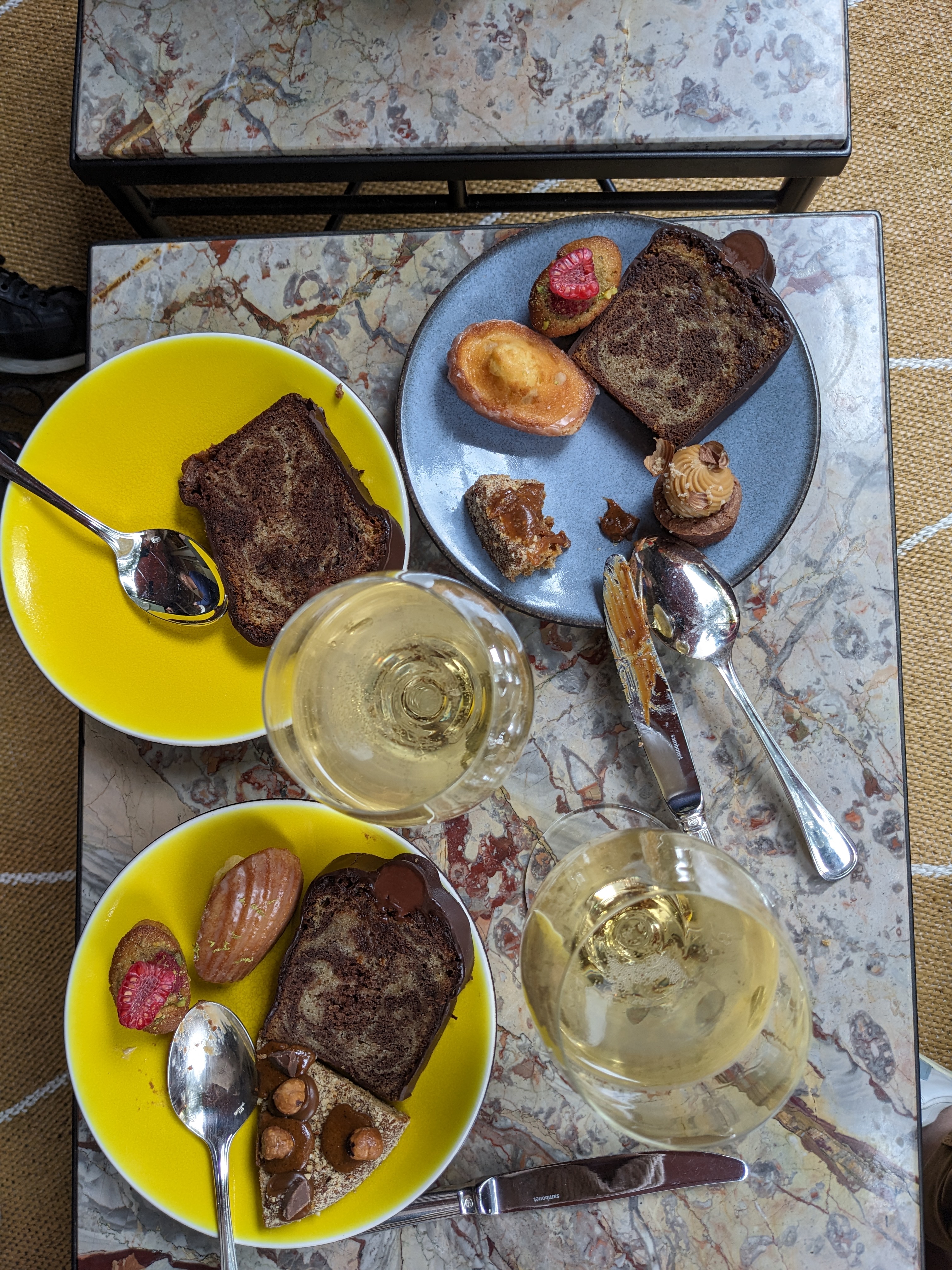 Pâtisseries recommandées par l’émission « Très très bon » : elles sont certes bonnes mais à 13€ sur place, c’est un peu excessif par rapport à d’autres propositions de la capitale. Ou alors pour le prix, on aurait préféré qu’on évite de passer l’aspirateur pendant plus d’un quart heure en plein service.