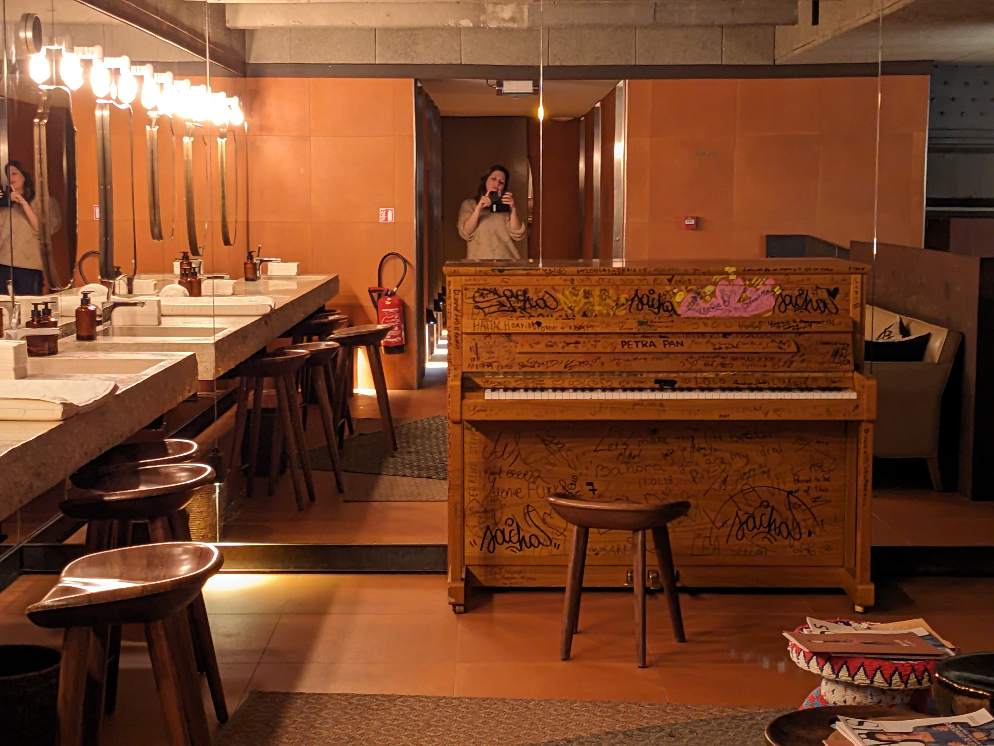 Je m'y suis rendue pour une privatisation sur la terrasse, l'ambiance est cosy et haut de gamme, le personnel très agréable et gros coup de coeur pour les toilettes qui sont absolument incroyables et à voir au moins une fois dans sa vie !