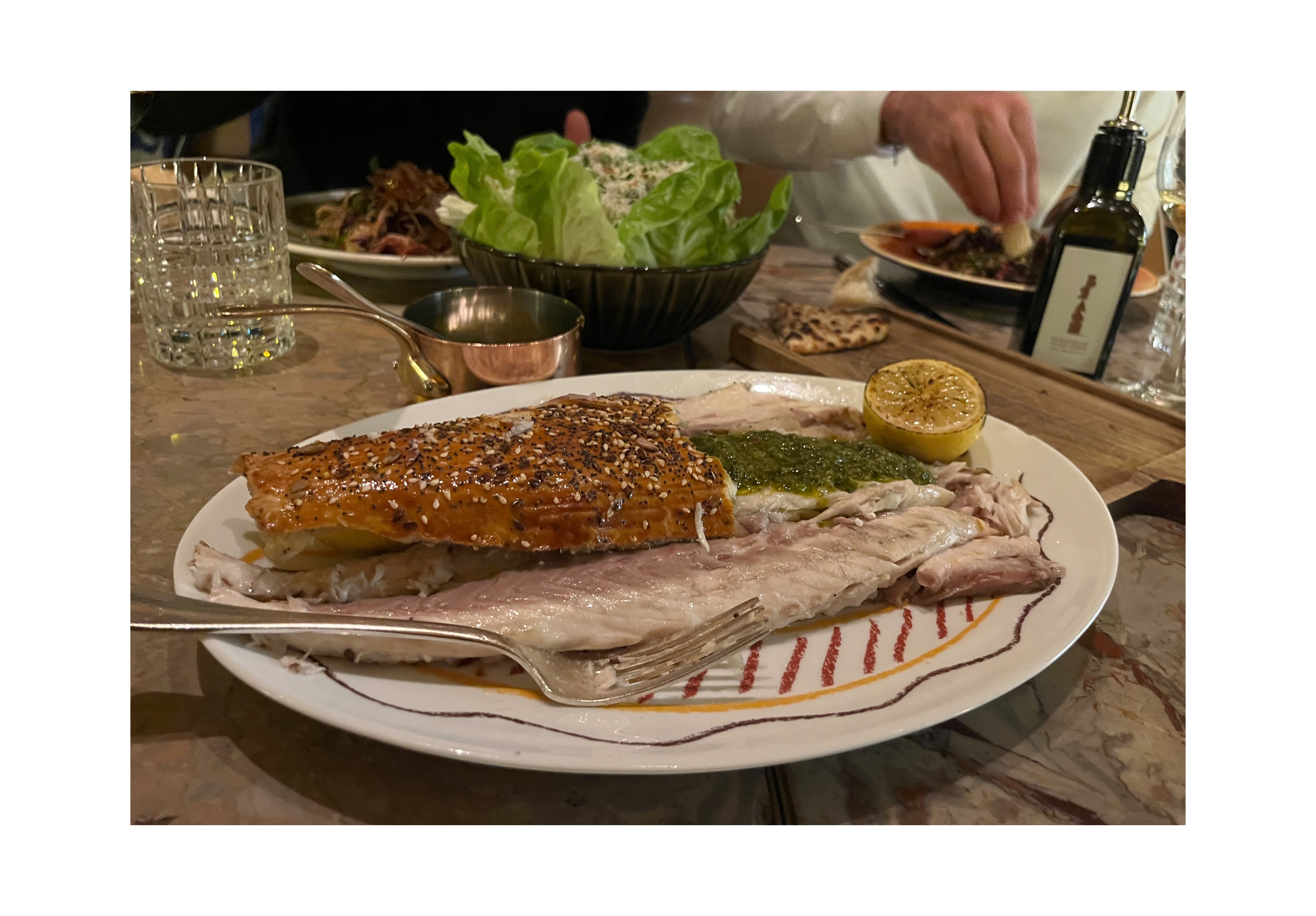 Accueil toujours au top à la réception comme au restaurant et dans tout l'hôtel . Restaurant aux lumières chaudes, déco chaleureuse et confortable, grande cuisine ouverte qui est une véritable invitation à se régaler et tout essayer. Toujours aussi délicieux Hoummous à la poudre de sumac et zaatar d'Iran avec le léger citron caviar pour le relever avec délicatesse, et toujours aussi inoubliable épaule d'agneau confite parfaitement accompagnée d'un Mesfouf à la pistache et à la fleur d'oranger: l'agneau fond dans la bouche littéralement; à ne jamais enlever de la carte! Service attentionné avec l'envie de faire plaisir. Un très bel endroit méditerranéen qui fait voyager et d'où l'on sort joyeux!