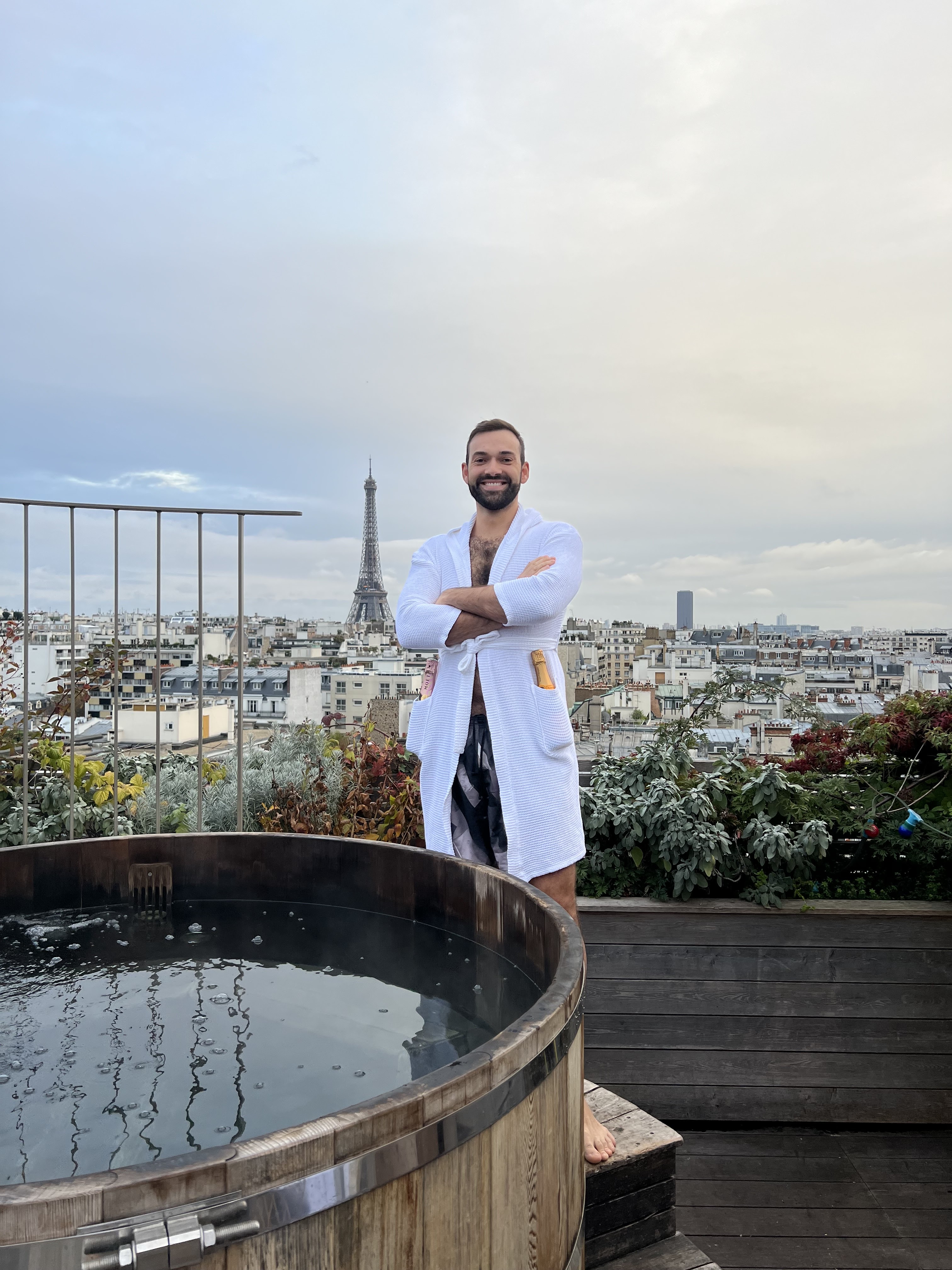 Fabuleux! Bien plus qu'un hôtel! Moment hors du temps. Le confort des chambres, l'atmosphère qui règne ici est merveilleuse. Le jardin sur le toit avec le bain nordique et la vue sur la tour eiffel à couper le souffle. La taille de la piscine en plein paris...