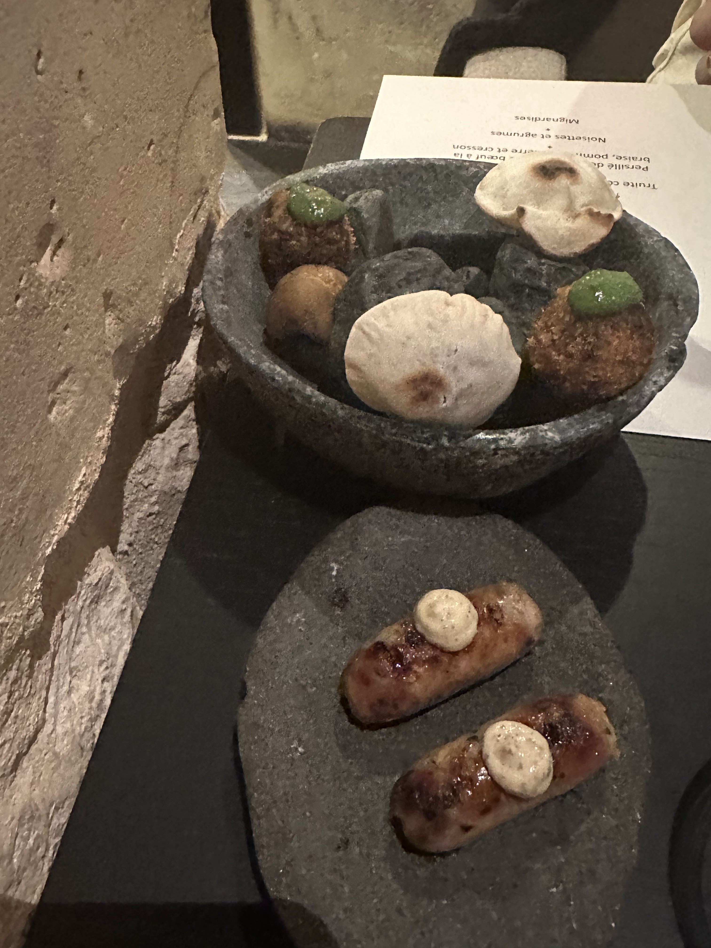 Expérience incroyable ! Nous avions réservé avec mon collègue un midi. Le cadre est vraiment unique ! Accueil vraiment sympa, les serveurs était très professionnels et passionnés. Les plats m’ont vraiment créé une émotion que je n’avais jamais ressenti auparavant… le côté fumé était vraiment agréable et s’accordait parfaitement dans l’assiette. Le vin qui nous a été conseillé était parfait et s’accordait merveilleusement avec nos plats. Merci au chef pour cette expérience incroyable, unique et merci au personnel de salle pour leur bienveillance. Une table à faire absolument à Paris !