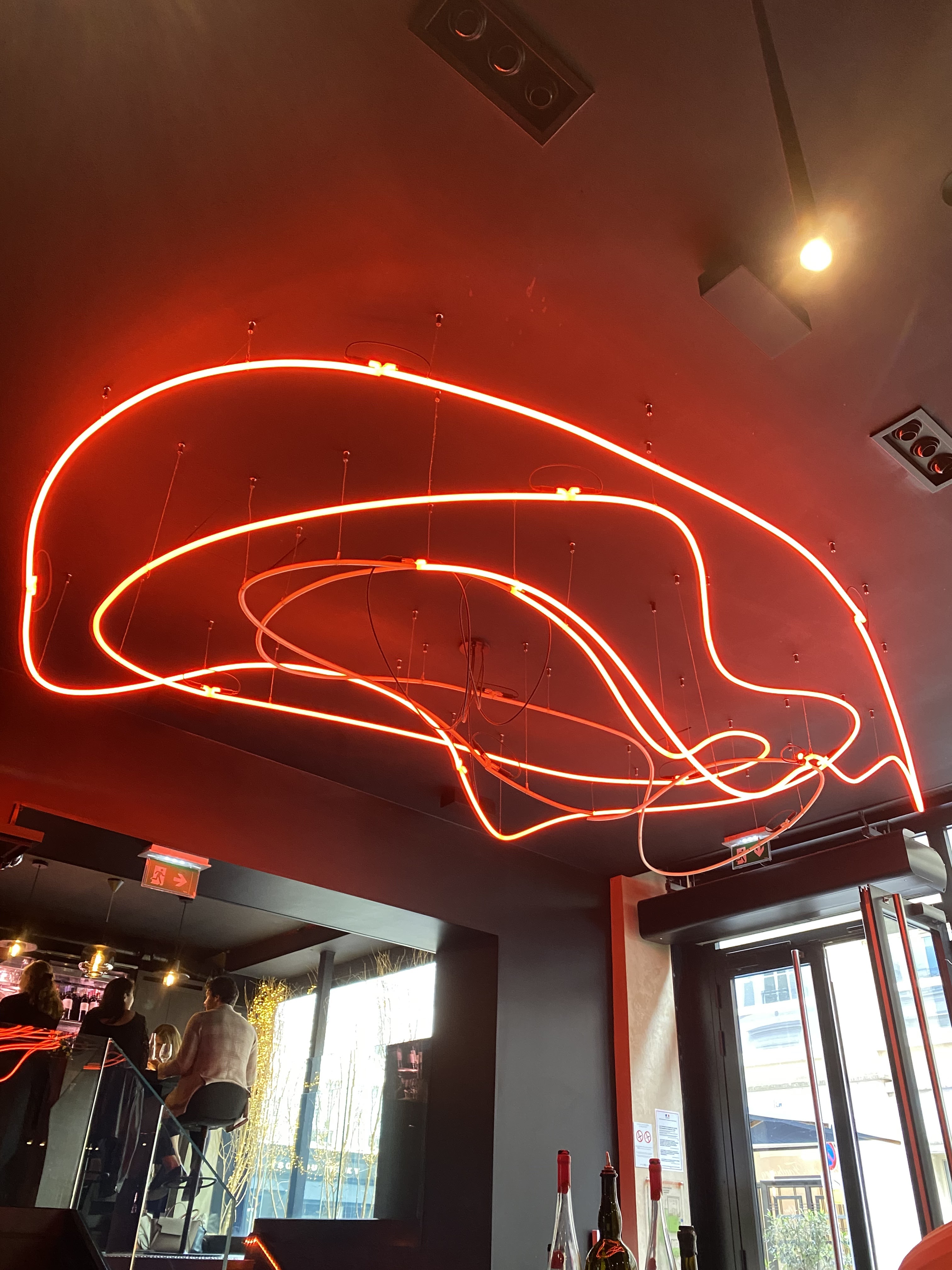 Nouveau restaurant plein de belles promesses ! Cadre chaleureux avec une très belle décoration intérieur, attirant l’œil le soir avec de jolis néons rouge et un accueil chaleureux. Côté cuisine, gros coup de cœur pour la saint Jacques cuite dans une châtaigne au barbecue, tres grand plat ! Tout y es pour passer un bon moment, avec une jolie carte des vins. Menu déjeuner abordable pour le quartier. Allez y les yeux fermés !