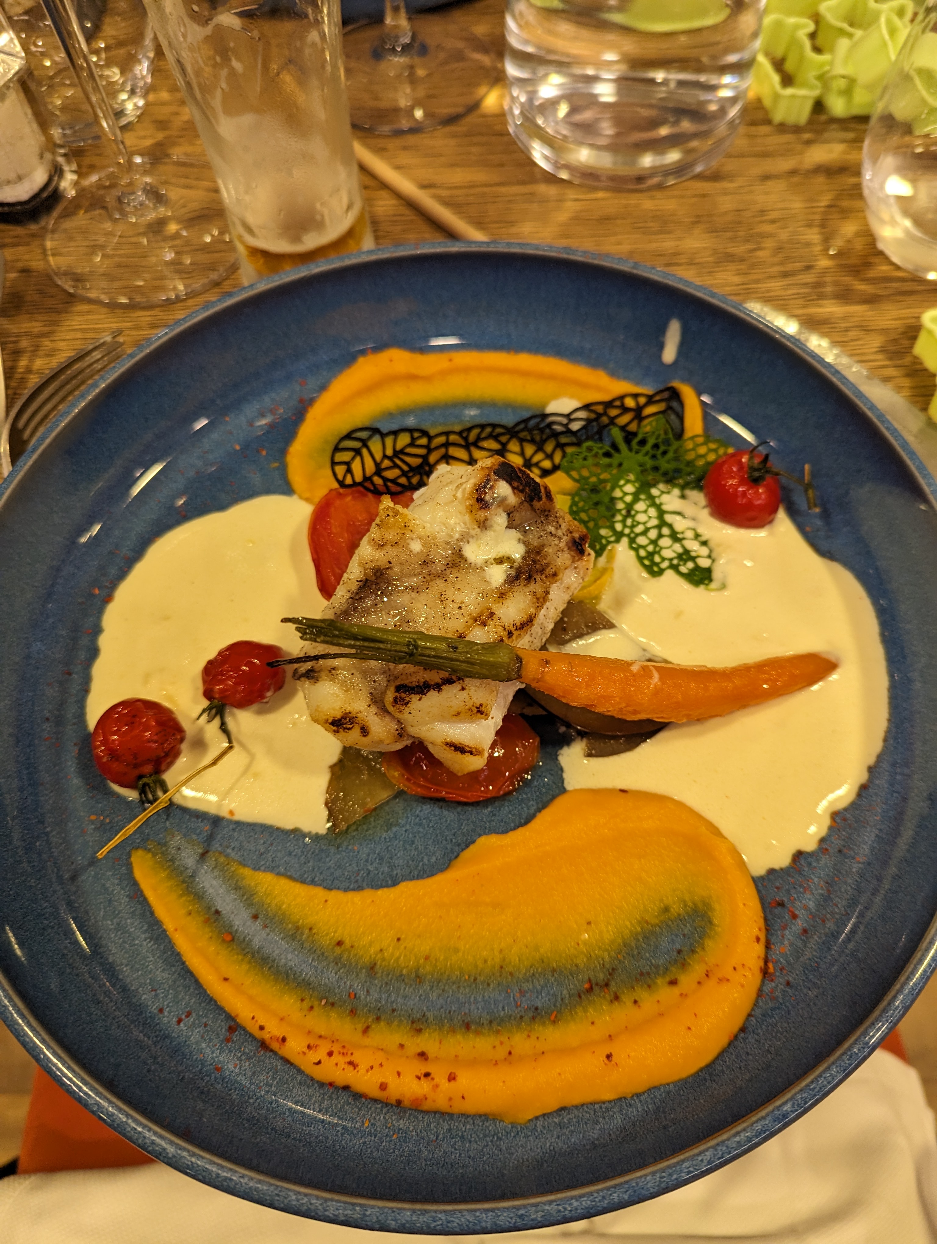 Bonne cuisine assez créative mais trop d’attente entre les plats et vins au verre en rupture de stock (Chardonnay, corbières rosé) c’est dommage parce que c’est un beau restaurant.