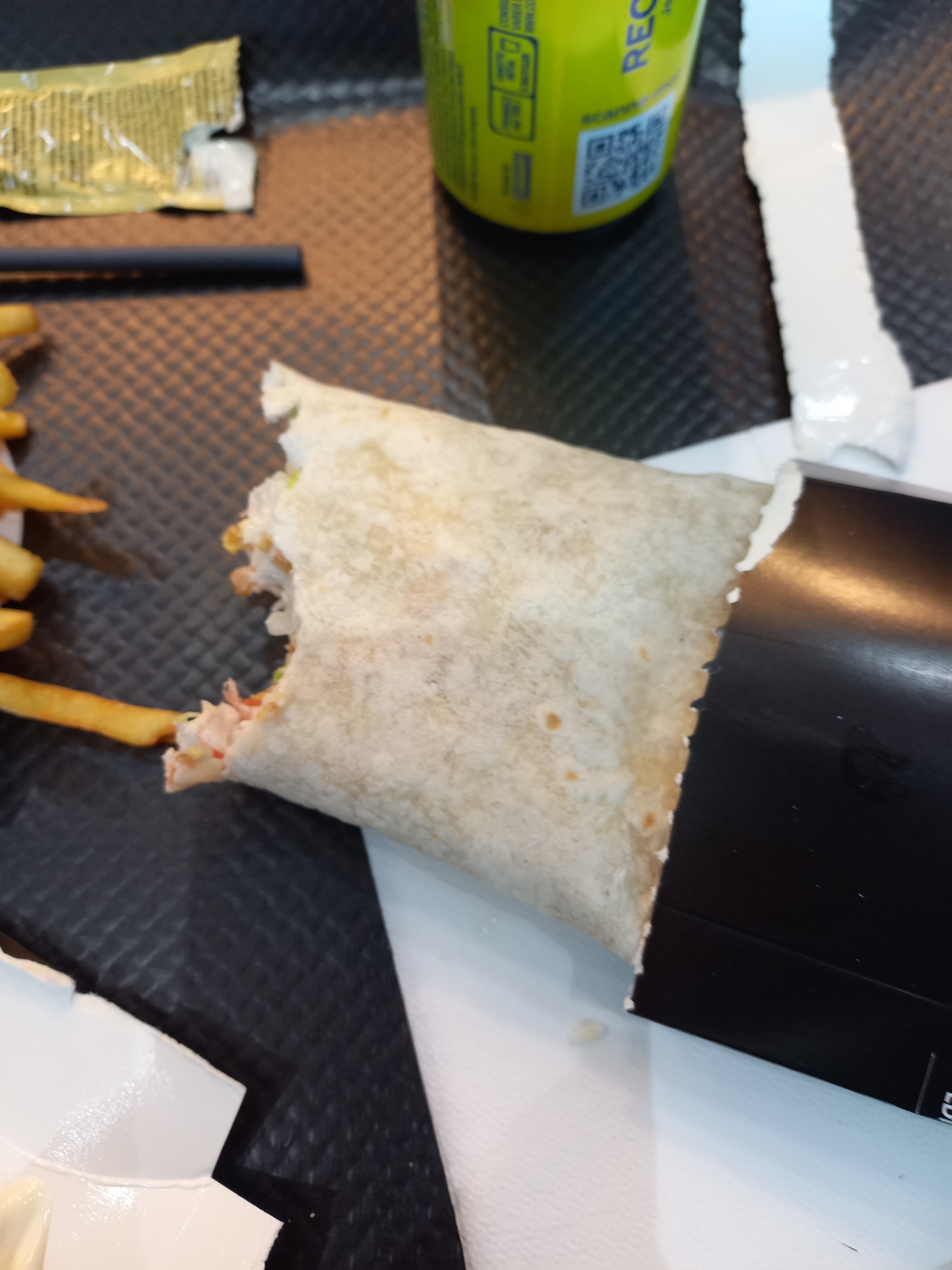 Attente 20 minutes dans le froid car la salle de restauration est glaciale. On a du prendre à emporter et manger dans la voiture. « Manger » est un grand mot car le pain été sec et sans goût et le poulet trop modifié. Une fois mais pas 2. Sinon l’accueil caisse été plutôt sympa.