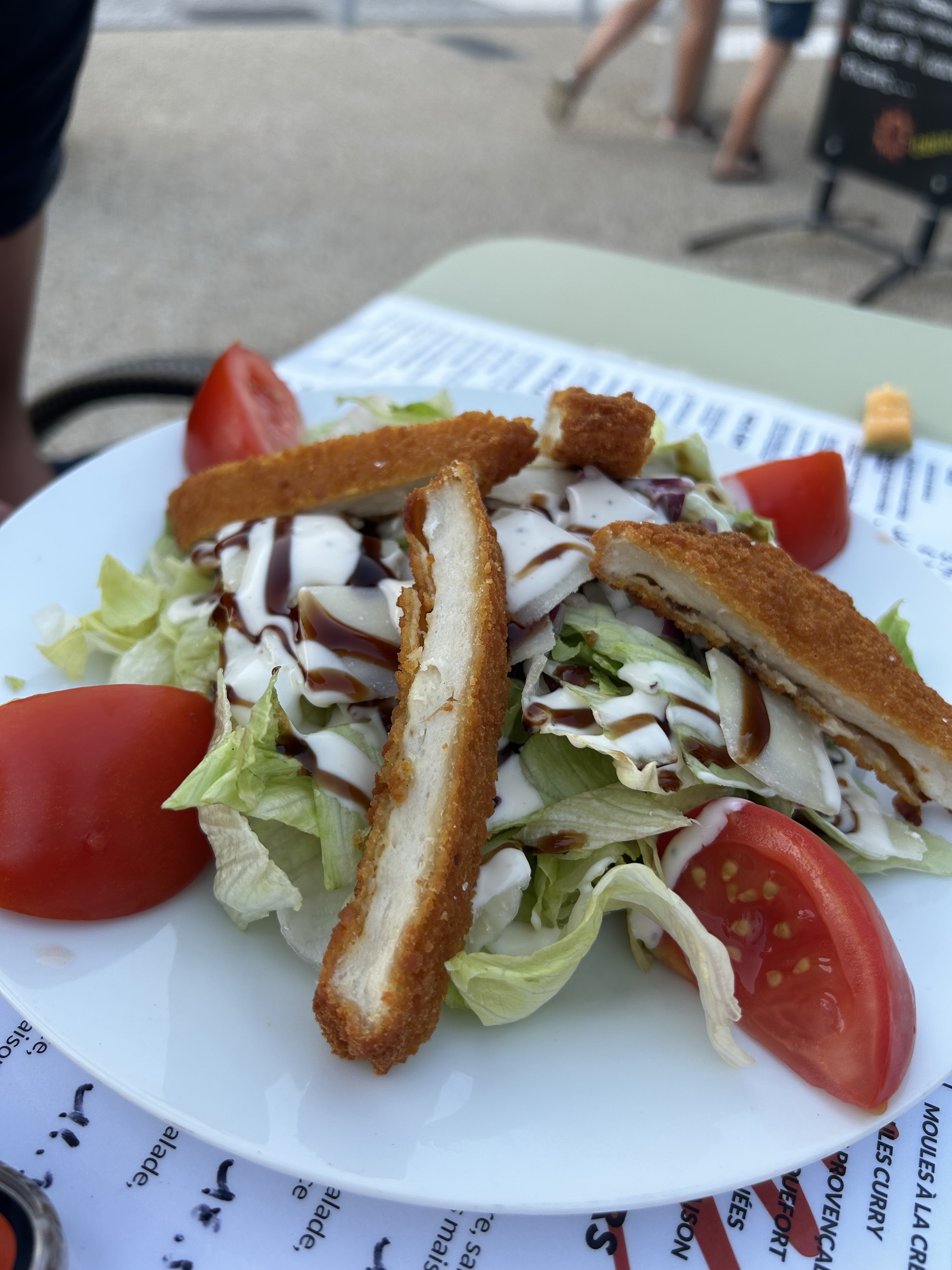 Salade de chèvre chaud composée principalement de salade verte (95%), sauce quasiment absente et 4 pauvres croutons de pain (4%) dans l’assiette. Je ne recommande définitivement point ce soit disant « restaurant » bien trop cher pour la salade « issue du marché » en réalité issue d’un paquet.