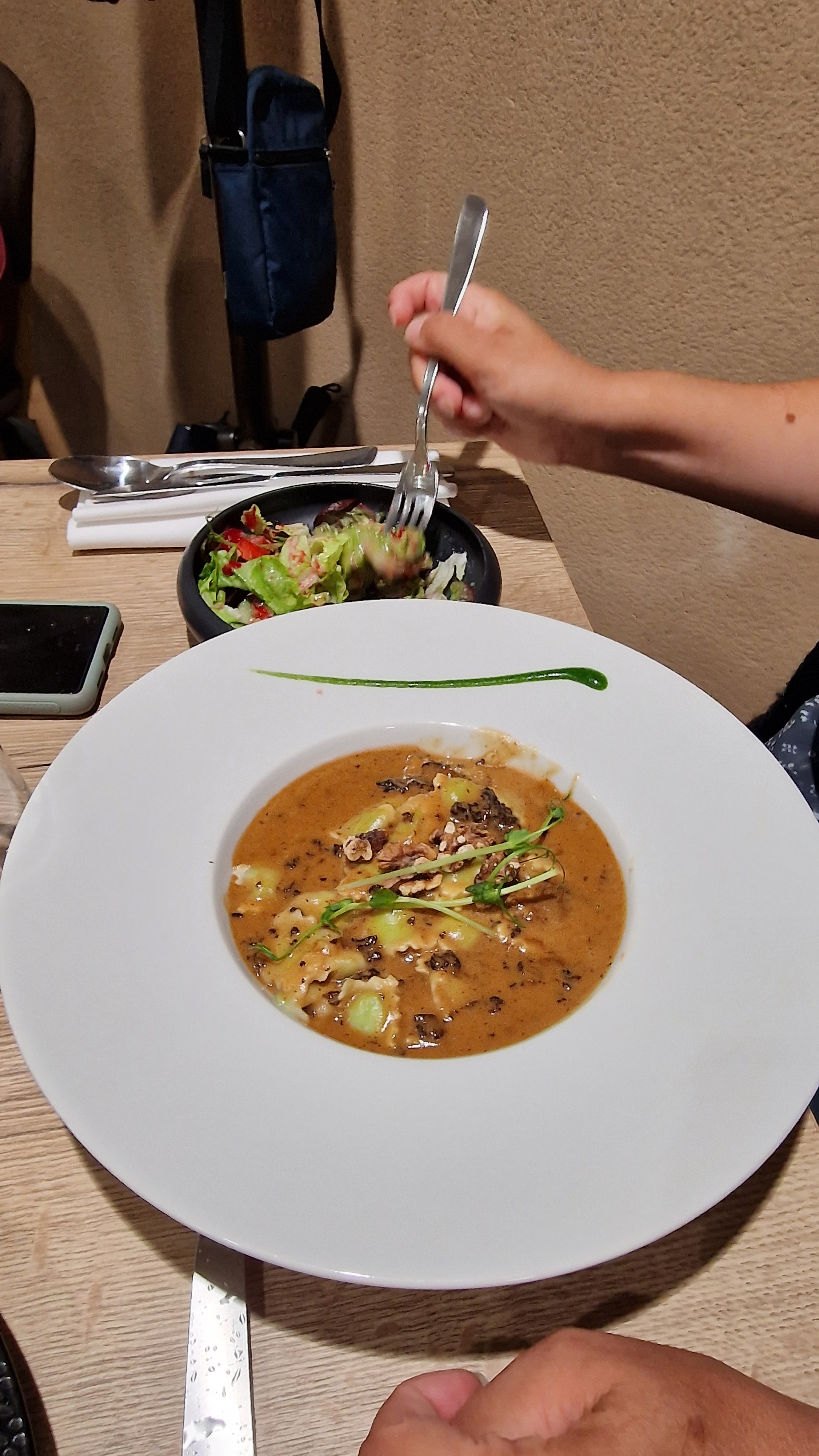 Une bonne table (et de très bons vins), un service agréable et un cadre très accueillant. Magnifique intérieur avec des murs en pierre. Nous recommandons vivement 👍🏻