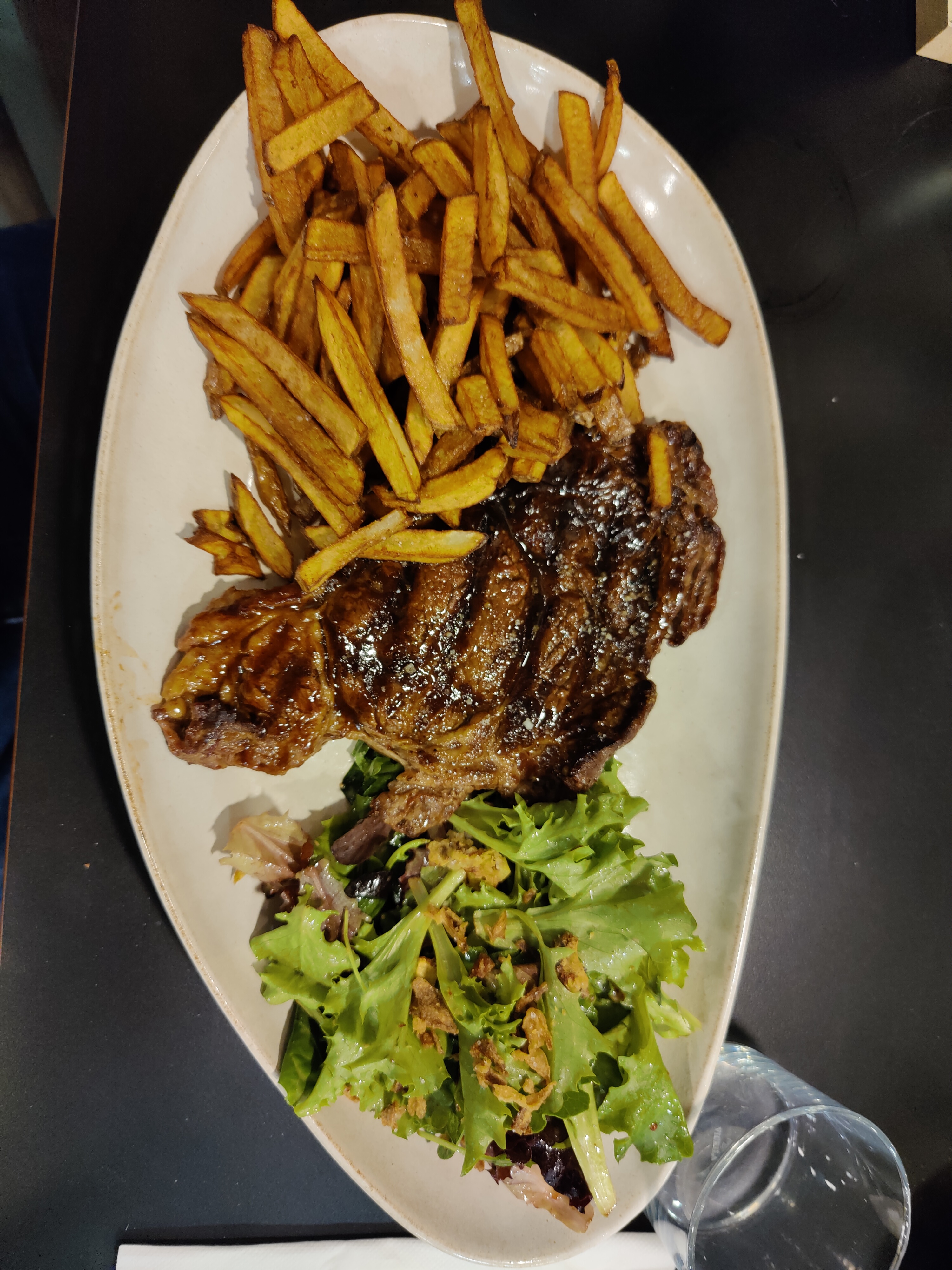 Super accueil, côte de bœuf de Galice hyper bonne, frites maison excellentes. Un peu moins lumineux pour plus d'intimité serait idéal avec par exemple une petite bougie sur la table 👍 Le propriétaire du restaurant, les serveurs et le cuisto sont hyper sympas. Je recommande fortement cette brasserie