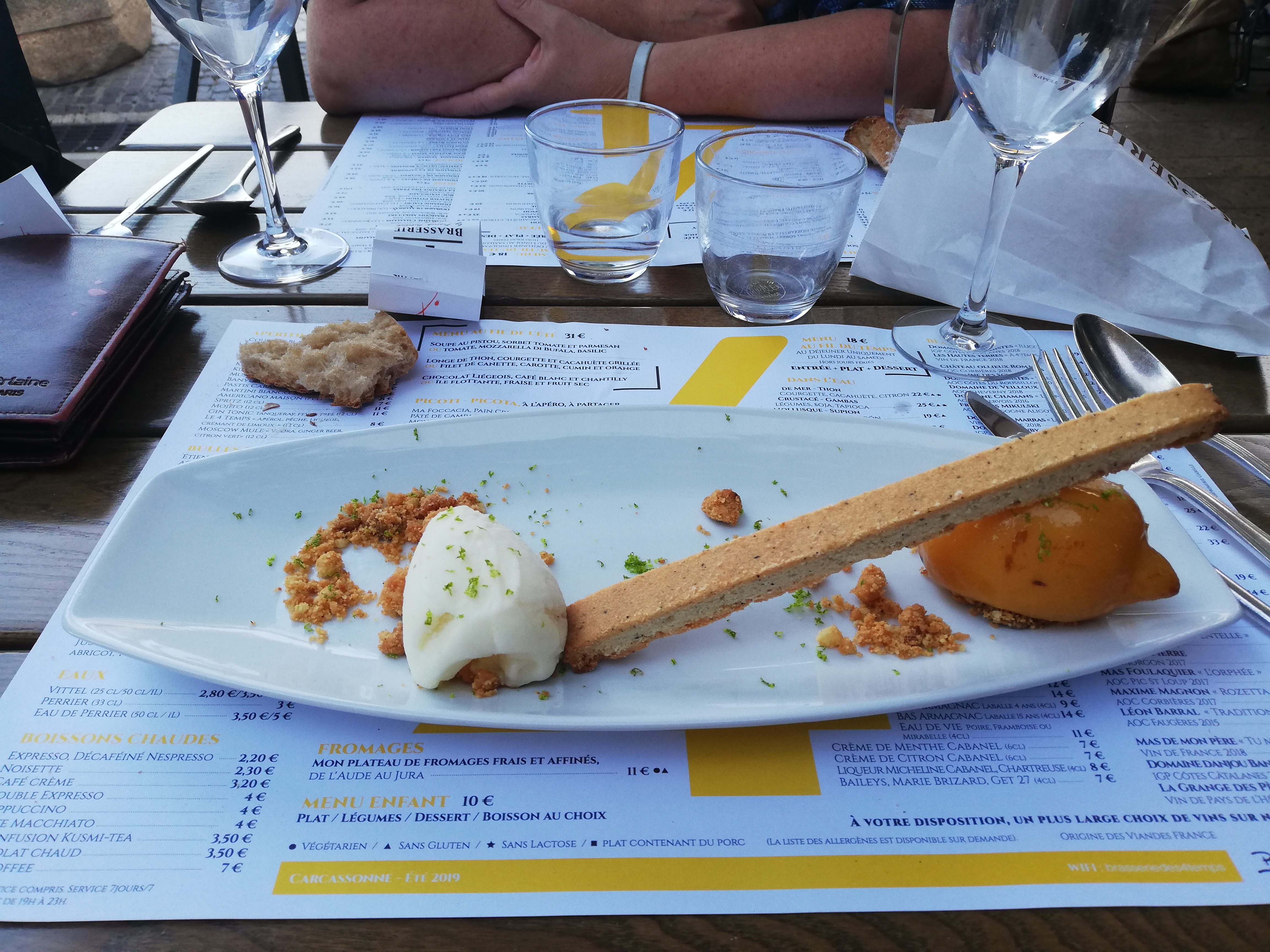 Nous recommandons vivement cette brasserie gastronomique dans lequel nous faisons escale à chacune de nos visites à Carcassonne. Cette fois en famille, l’accueil est chaleureux et sans prise de tête comme ça peut parfois être le cas dans ce type de lieu (l’établissement est chapeauté par F. PUTELAT, 2* Michelin). Les plats sont excellents et nos enfants ont énormément apprécié. La note finale est très correcte au regard des qualités.