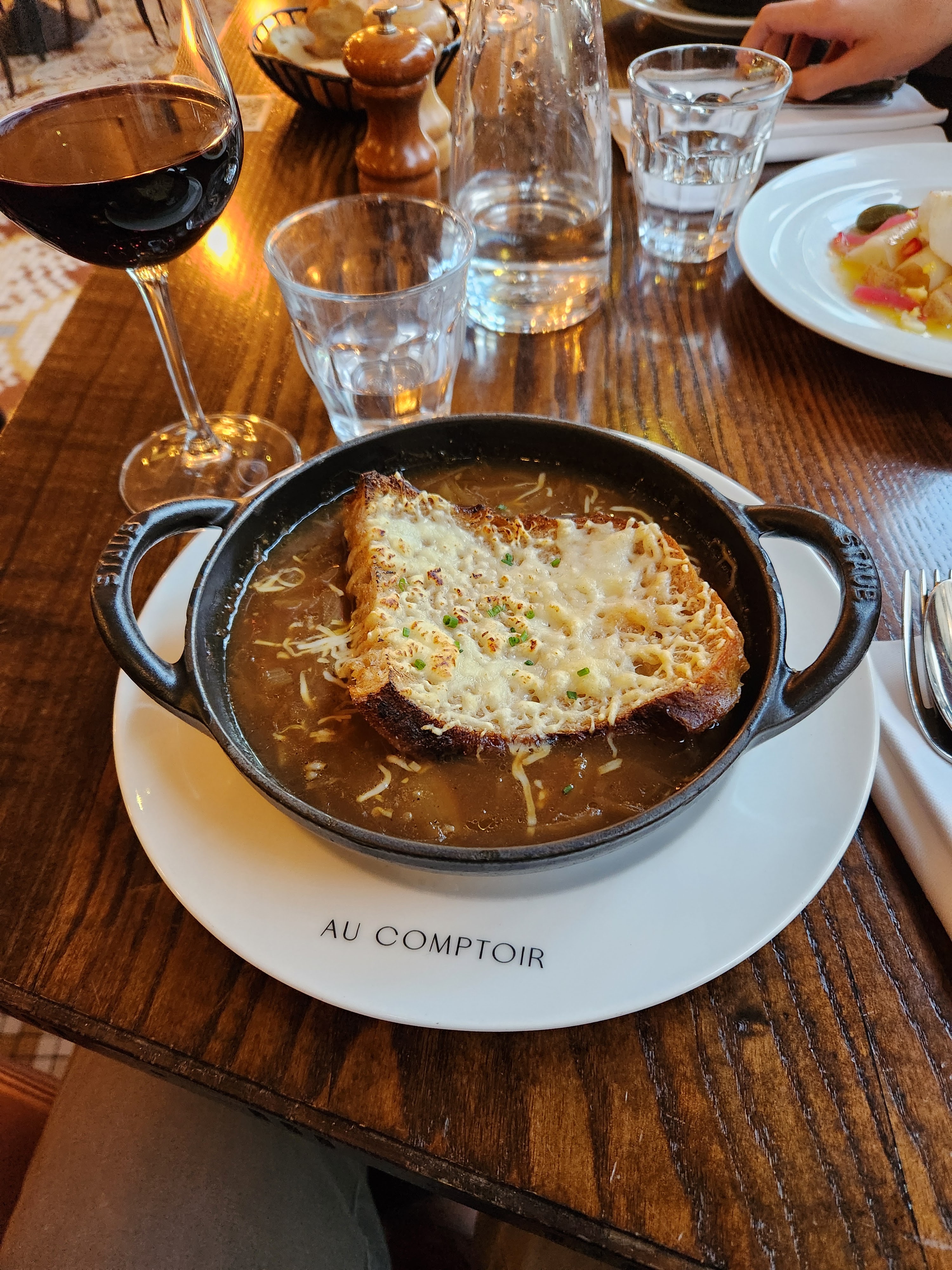 Ambiance chaleureuse et nourriture excellente à des prix équitables. Il y avait des classiques français - soupe à l'oignon et agneau.