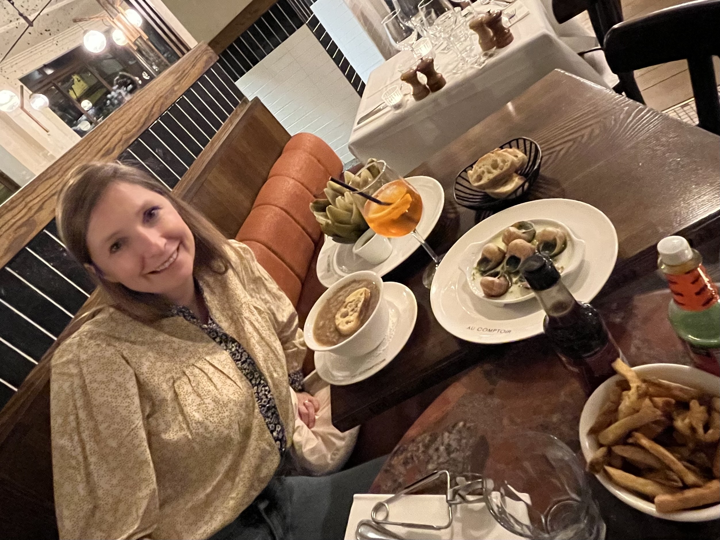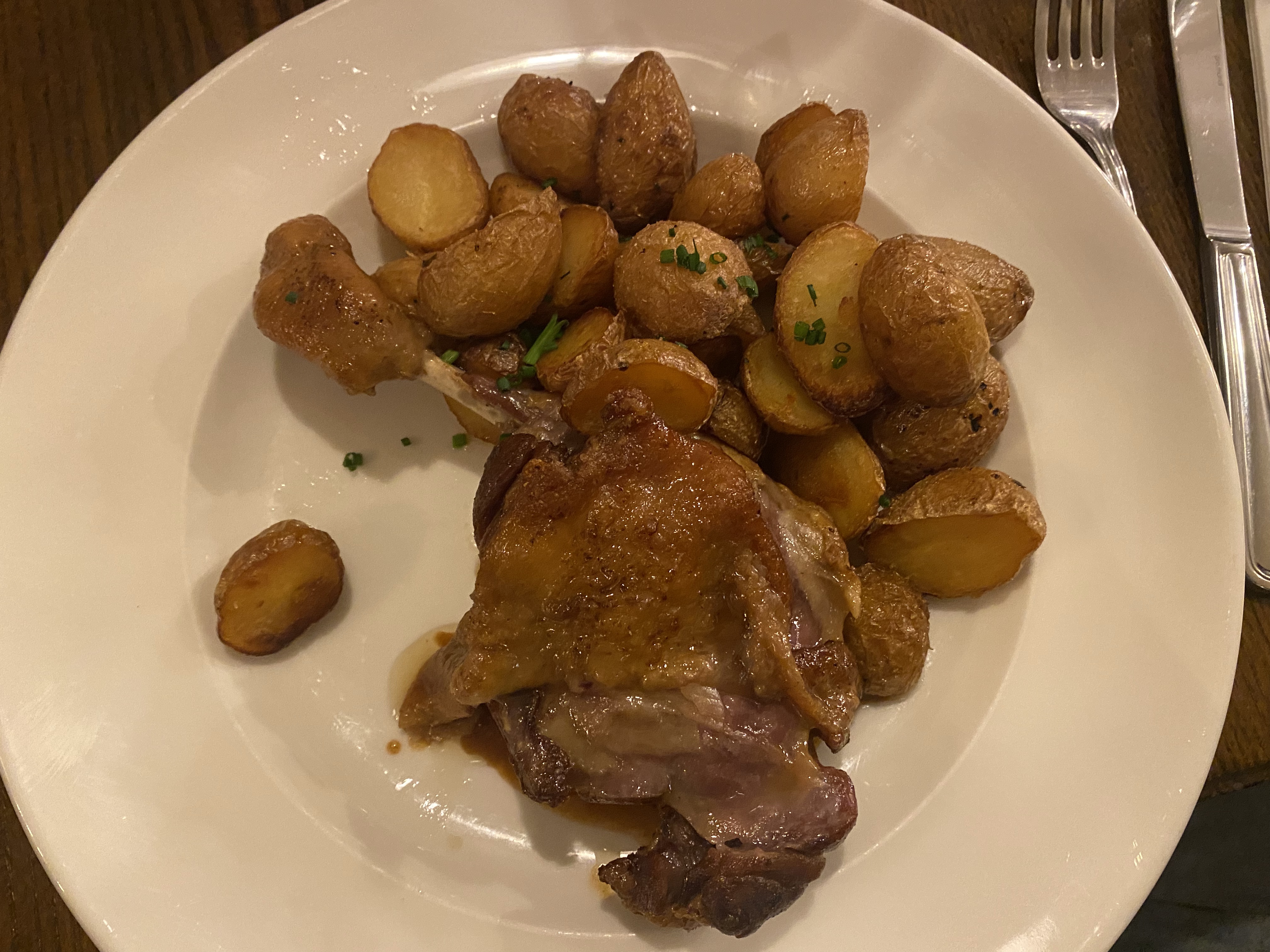 Nous nous sommes arrêtés ici pour quelques entrées rapides et du vin en attendant une table. La nourriture était bonne, le vin était bon et s'asseoir dehors et savourer un repas est toujours agréable. Nous commandons des escargots, des frites et du saumon. Tout cela était plutôt bien, mais rien ne ressortait vraiment. Leur menu propose probablement plus d’options, plus uniques ou meilleures, mais nous n’avions tout simplement pas prévu d’en obtenir plus.