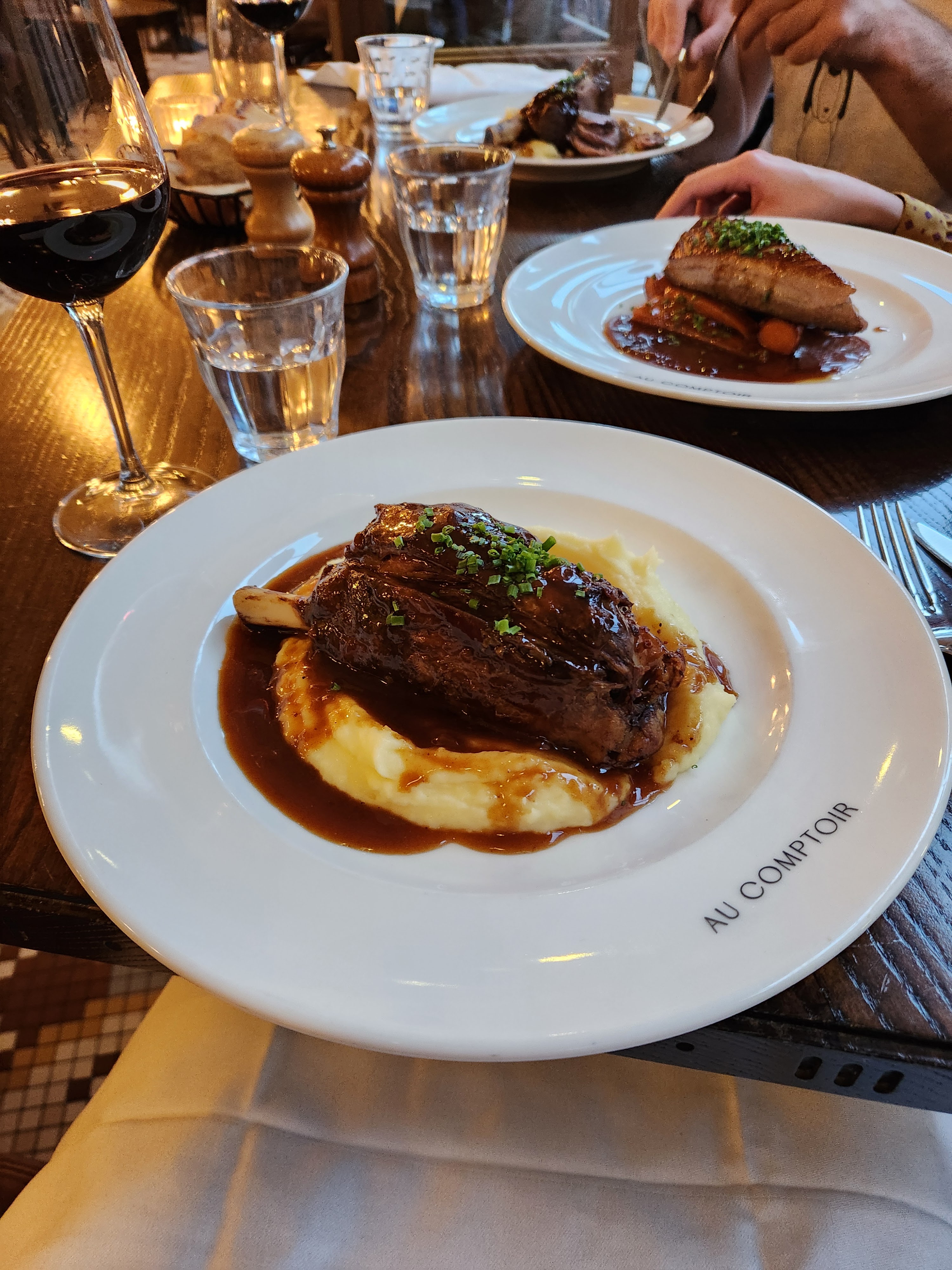 Nous avons découvert la Brasserie au comptoir lors de vacances au Mexique et nous y sommes arrêtés lors de notre voyage à Paris. Nous n'avons pas été déçus !! C'est un merveilleux restaurant avec une excellente cuisine, une belle décoration et un superbe emplacement ! Nous avons apprécié le poisson du jour, une merveilleuse planche de charcuterie et une bonne bière ! Le brassière au comptior est un incontournable !
