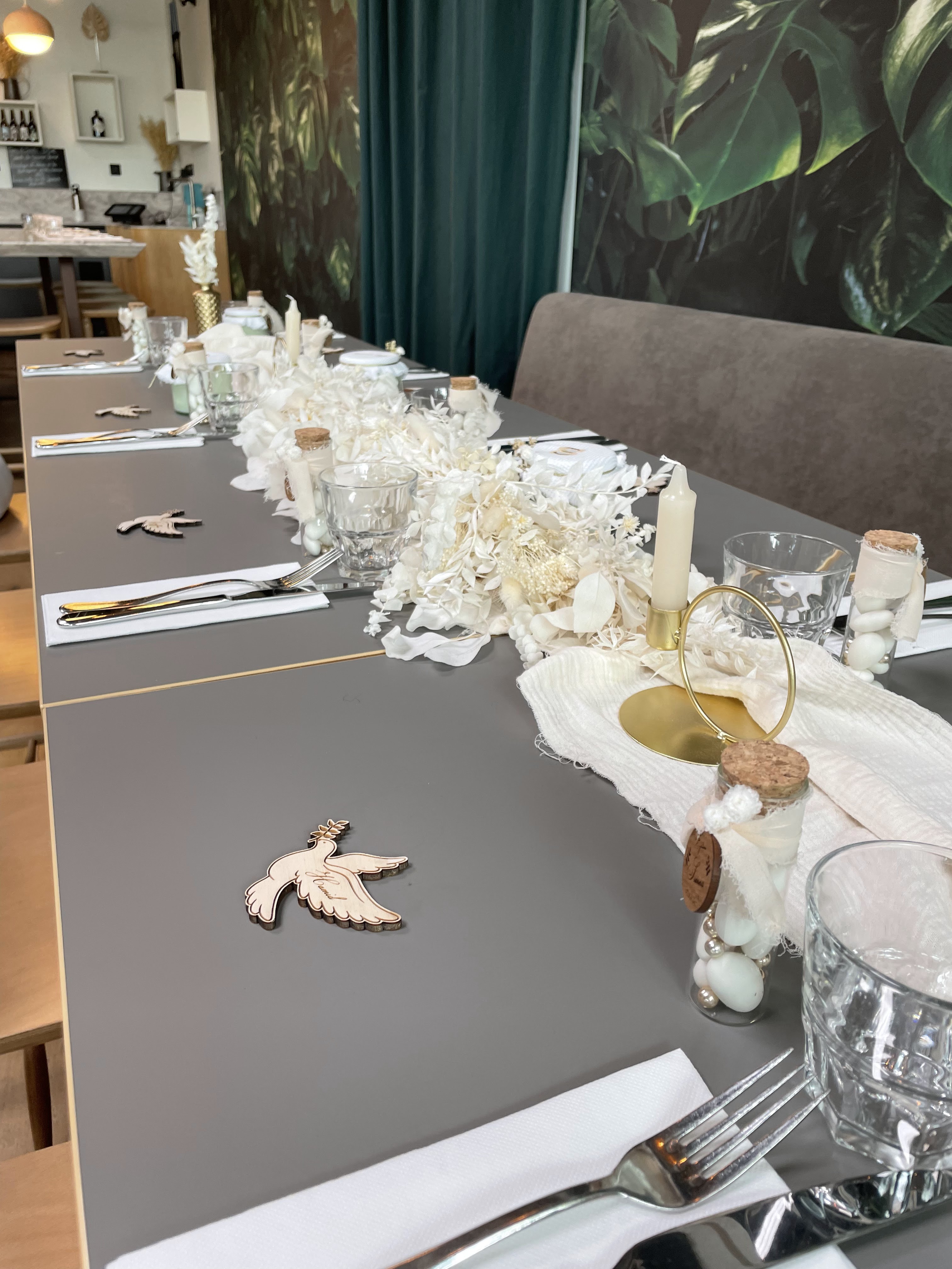 Un immense MERCI à Angélique et Romain, qui nous ont accueillis, nous et nos invités, au sein de leur brasserie Au Jardin pour notre soirée de mariage! Tout a été parfait, tant leur communication au préalable et leurs conseils concernant les préparatifs, que leur discrétion et disponibilité le jour J, sans parler de la qualité des produits: la cuisine était d’une qualité exceptionnelle, le cadre atypique et chaleureux, leurs professionnalisme et adaptabilité irréprochables. Merci pour la confiance mutuelle, et d’avoir si largement contribué à ce que ce jour particulier pour nous soit si réussi et ait dépassé nos espérances! Excellente continuation à vous, au plaisir de recroiser votre route, Julie et Romain