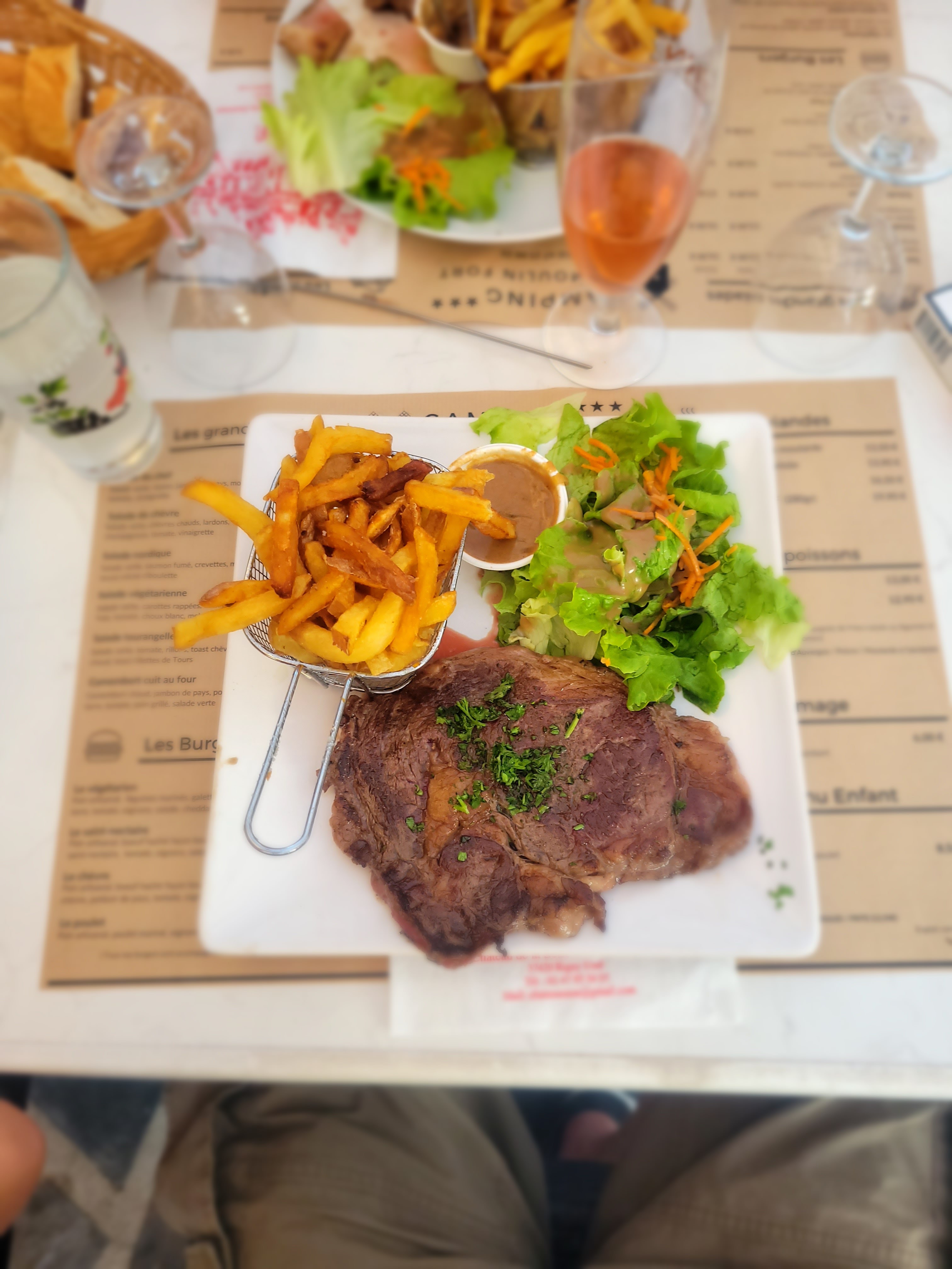 Tout était bon, cuisine simple, plats goûteux et copieux, nous avons fait l'erreur de prendre une planche à partager pour l'apéritif qui était très copieuse et à l'arrivée du plat nous avions plus vraiment très faim, mais on a laissé que nos frites 😅Prix raisonnable pour 4